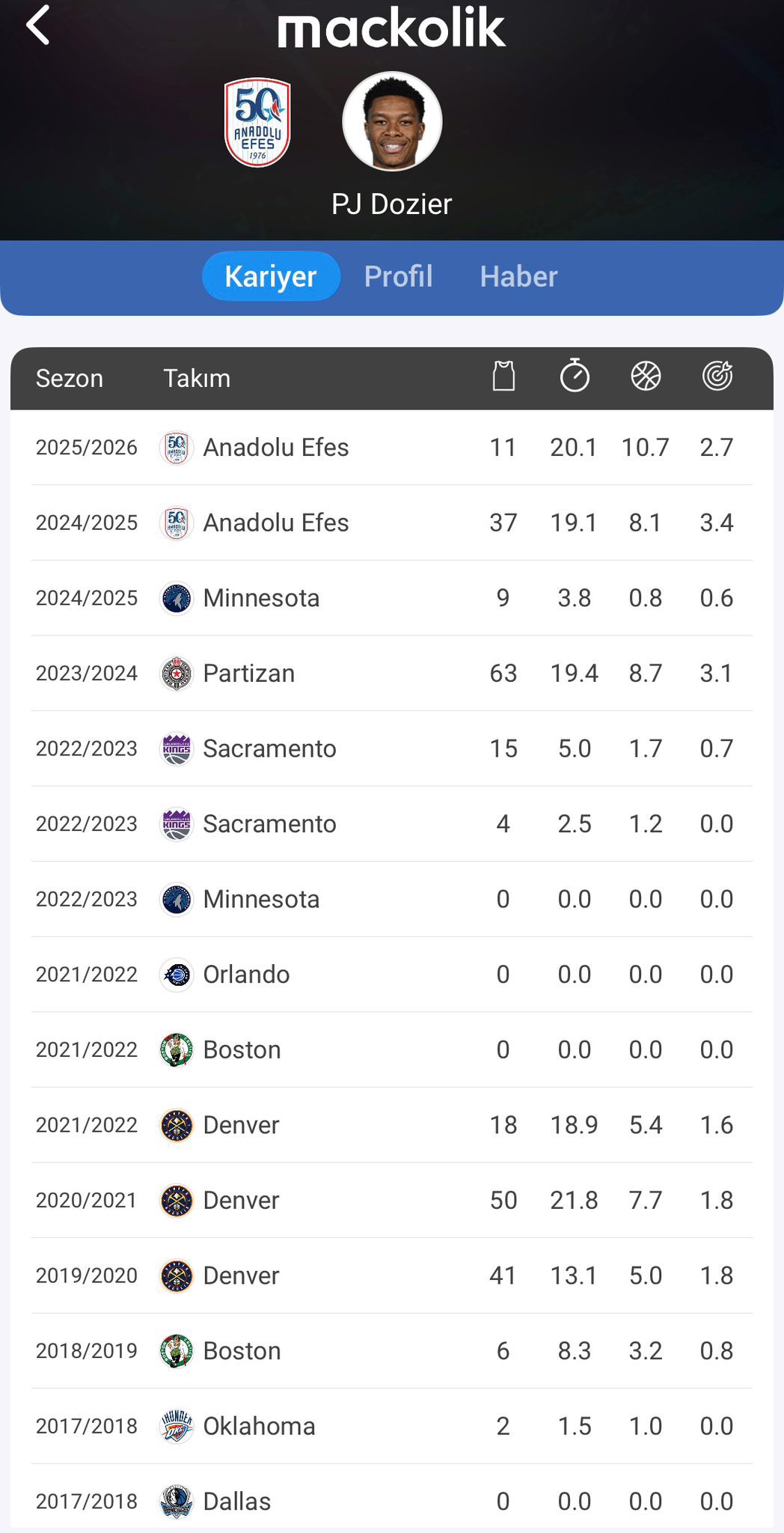 Amerikalı basketbolcu PJ Dozier, geçtiğimiz sezon Minnesota'dan Anadolu Efes kadrosuna katılmıştı.