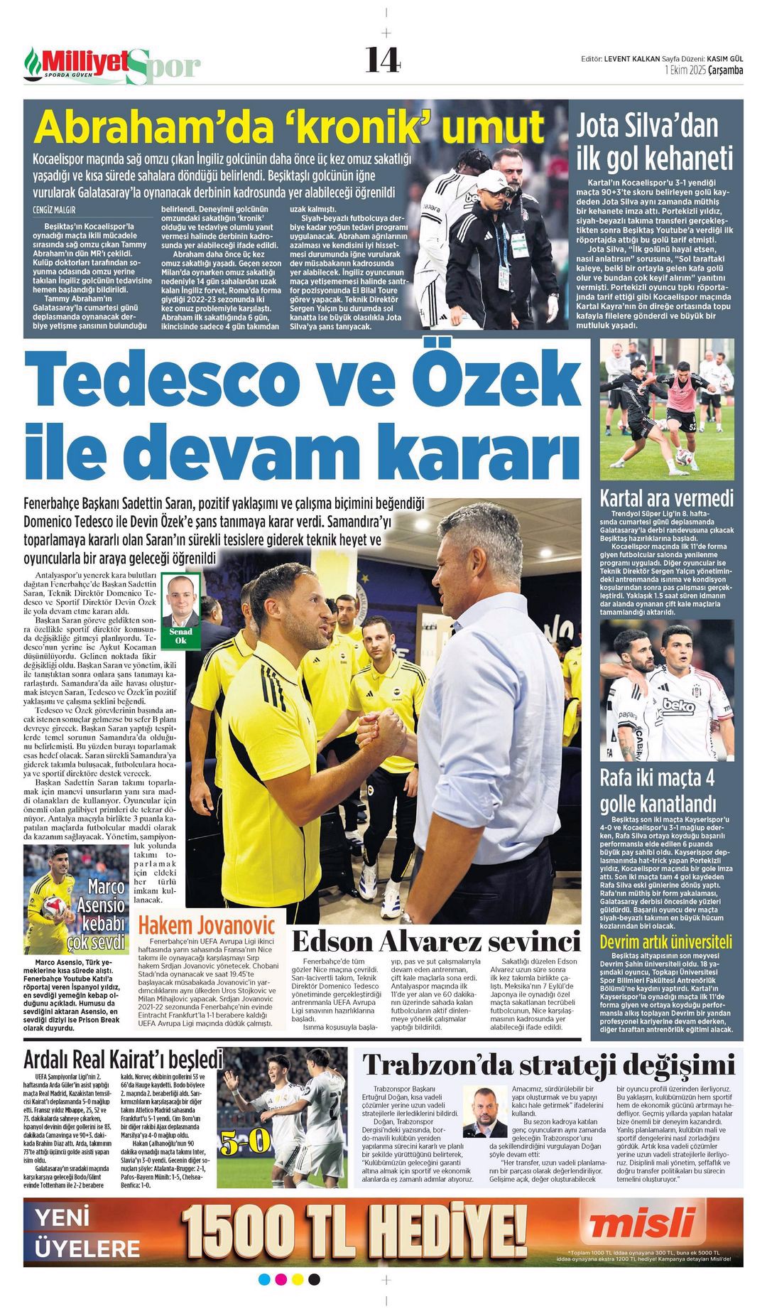 Gazetelerin spor sayfalarında günün öne çıkan manşetlerine göz atabilirsiniz.