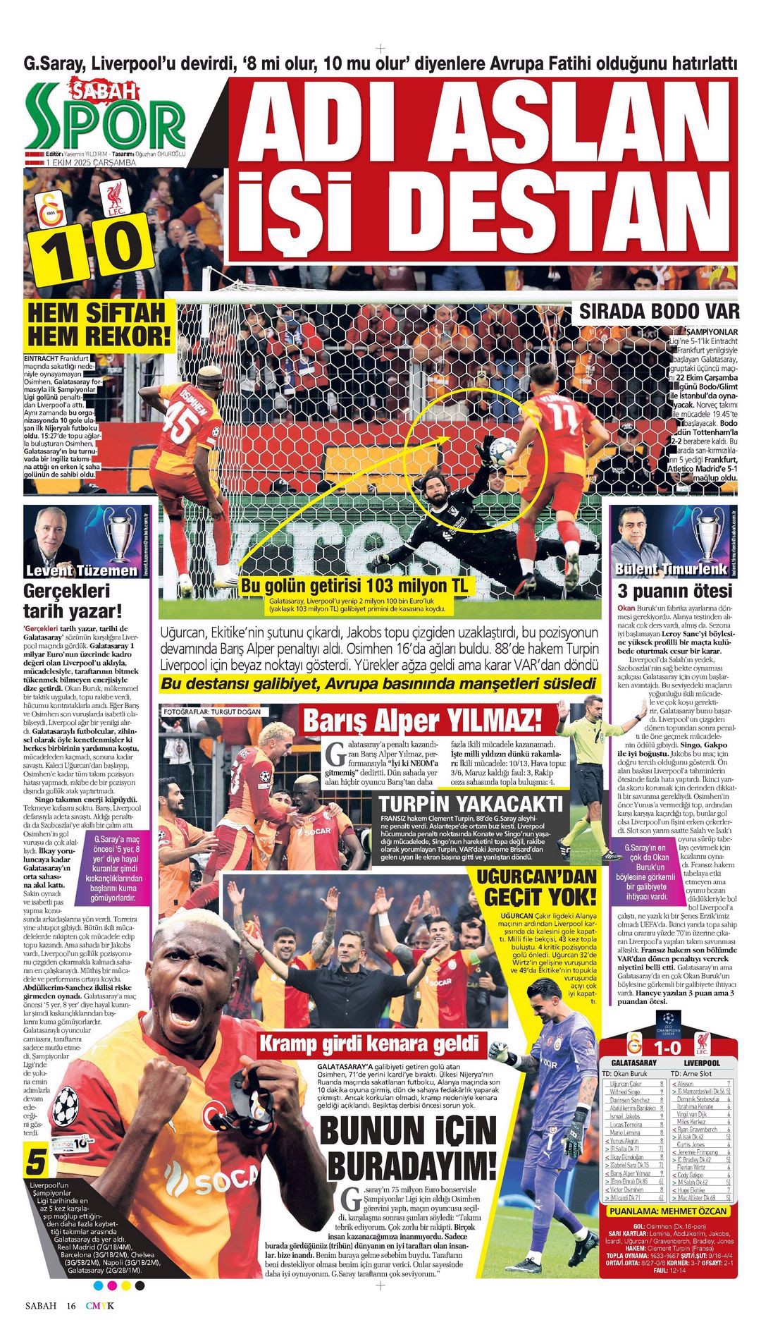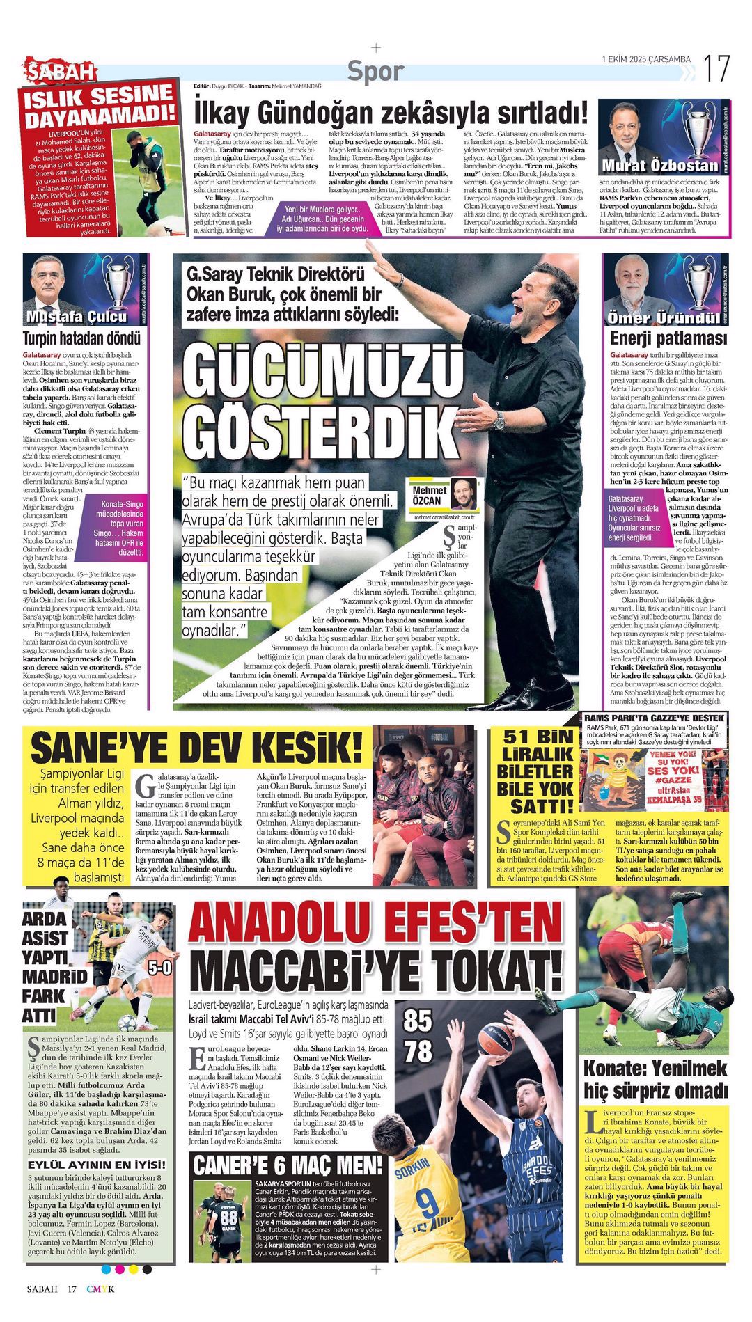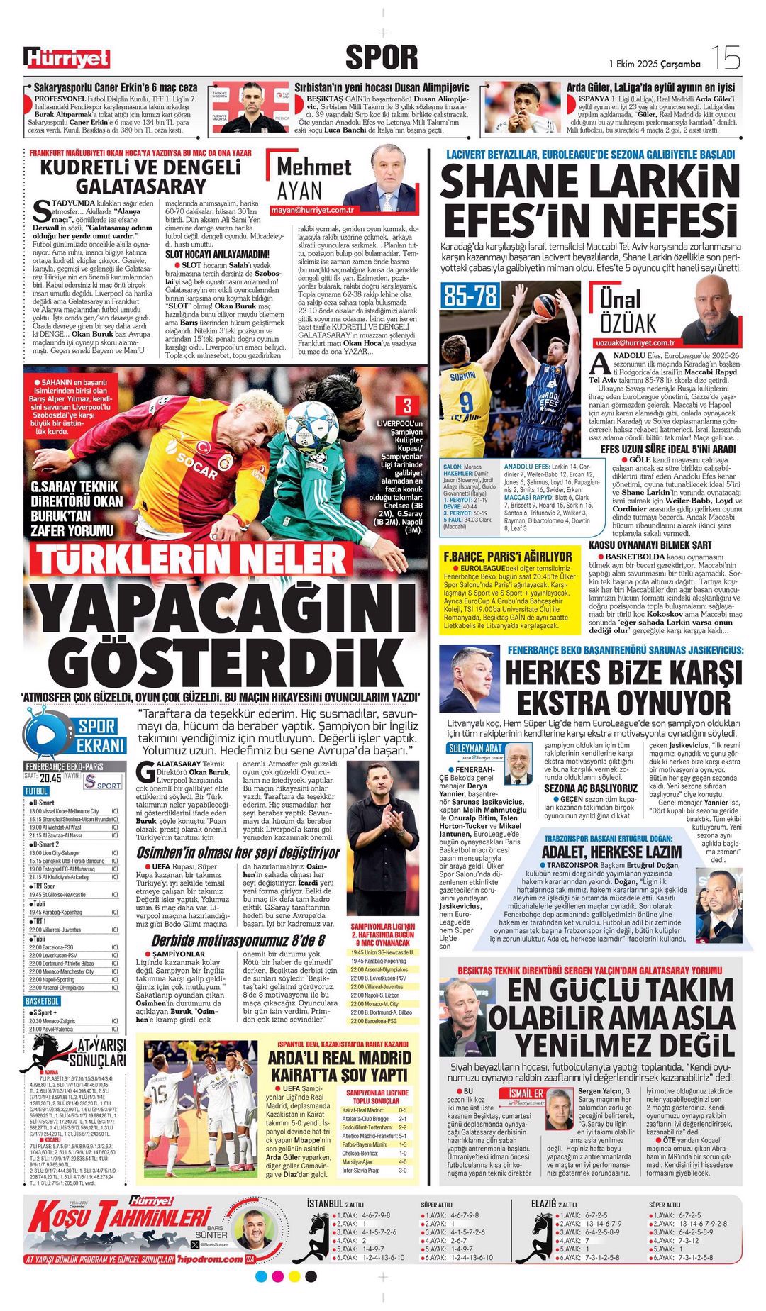 Gazetelerde günün spor sayfaları