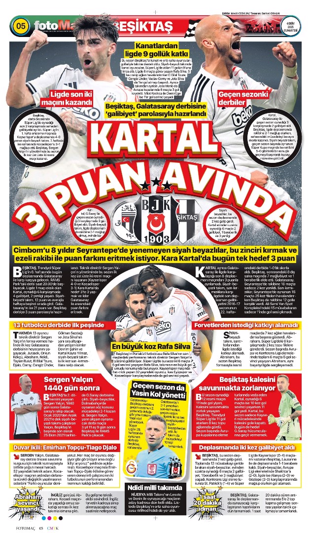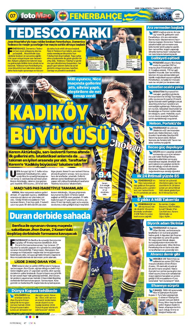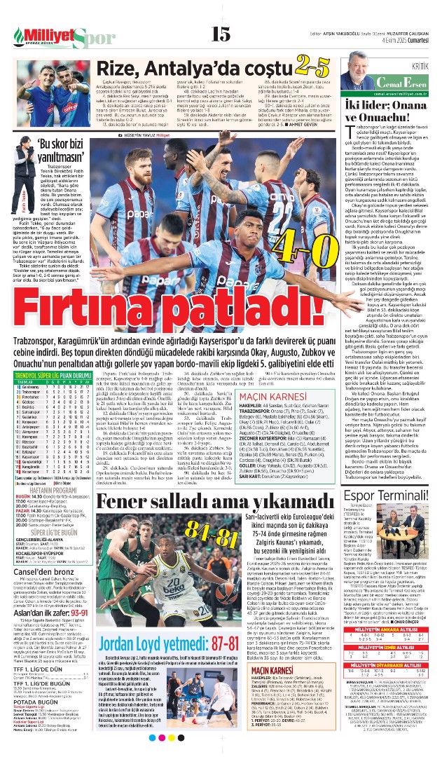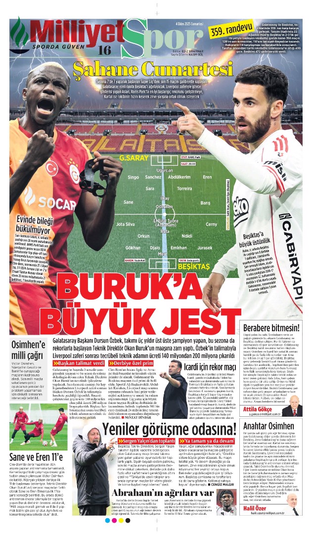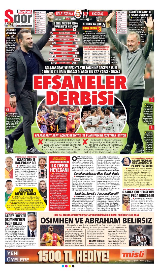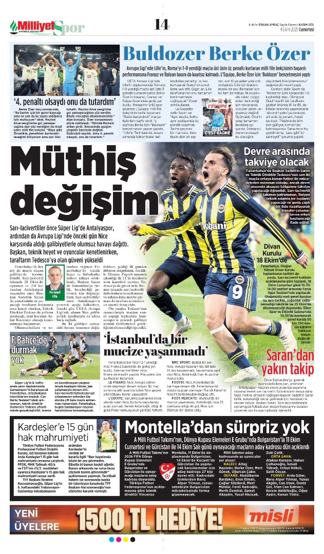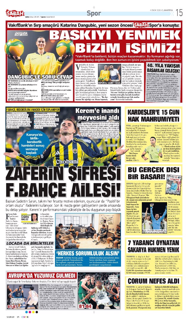 Gazetelerin spor sayfalarında günün öne çıkan manşetlerine göz atabilirsiniz.