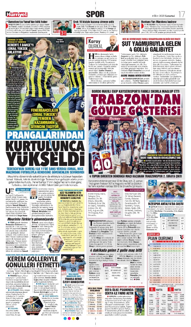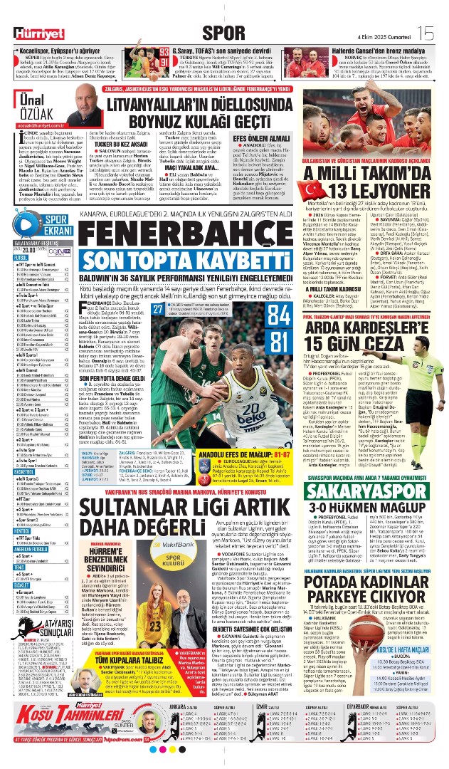 Gazetelerde günün spor sayfaları