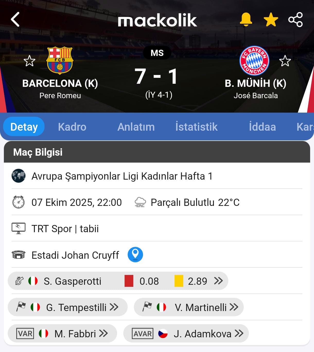 UEFA Kadınlar Şampiyonlar Ligi ilk haftasında Barcelona, Bayern Münih'i konuk etti.