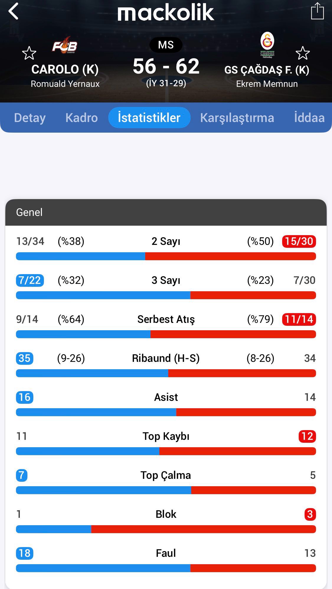 Temsilcimiz Galatasaray Çağdaş Faktöring, B grubunda ikinci maçında Fransa'nın Carolo ekibine konuk oldu. Karşılaşmanın ilk yarısını 31-29 geride tamamlayan sarı-kırmızılılar, ikinci yarıda geriden gelerek rakibini 62-56'lık skorla geçti. Ayrıca Galatasaray Çağdaş Faktoring, bu sonuçla grubunda lider konuma yükseldi.