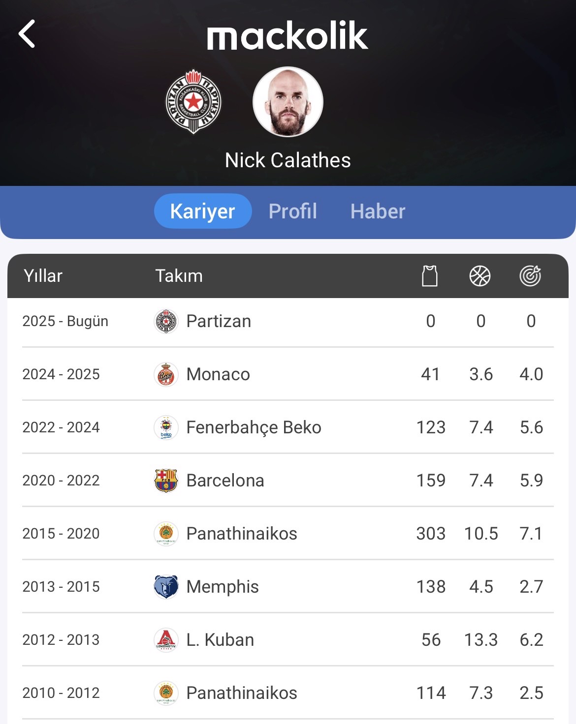 EuroLeague'den yapılan paylaşımda ise "Gerçek bir EuroLeague efsanesi olan Nick Calathes, Sırp ekibi Partizan ile güçlerini birleştirdi." ifadesi kullanıldı.