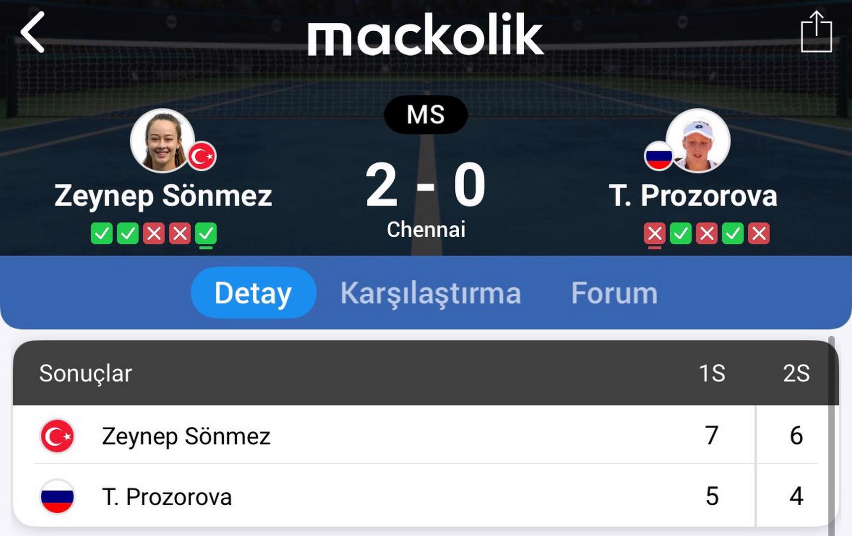 İlk seti 7-5 ile alan milli raket, ikinci seti de 6-4 ile kazandı ve adını ikinci tura yazdırdı.