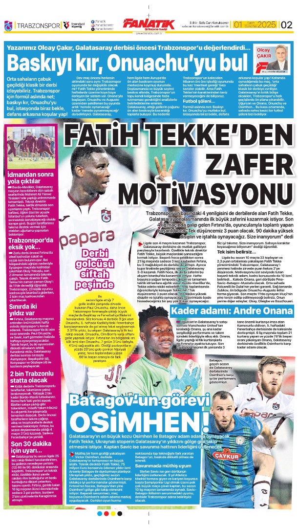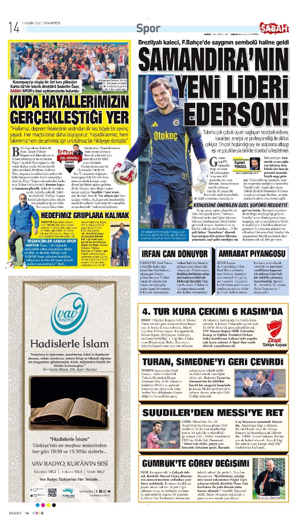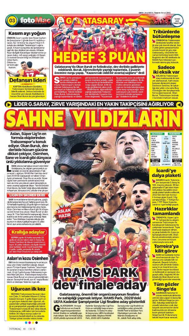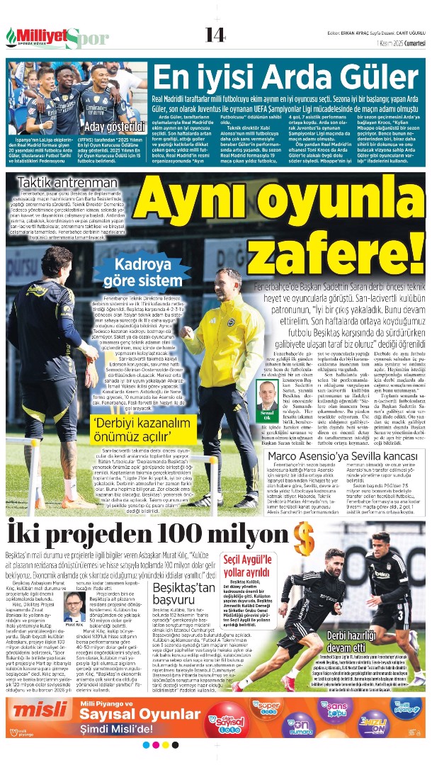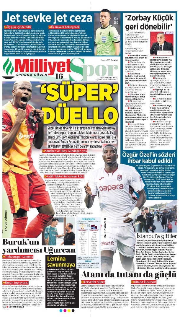 Gazetelerin spor sayfalarında günün öne çıkan manşetlerine göz atabilirsiniz.