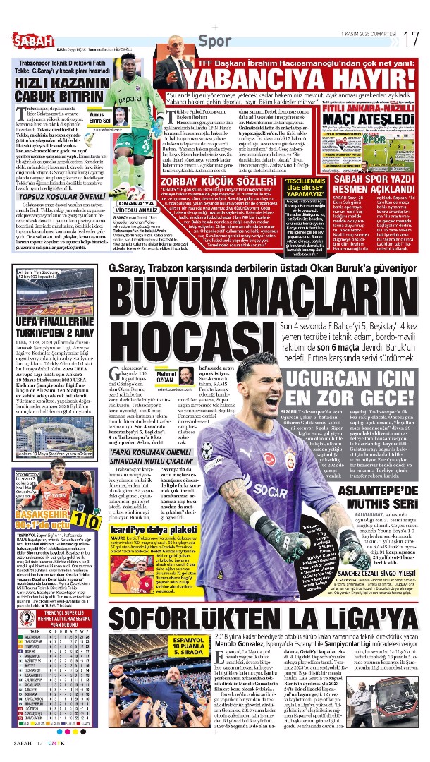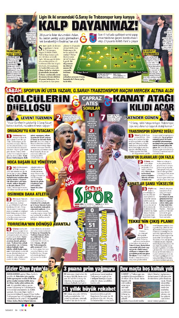 Gazetelerde günün spor sayfaları