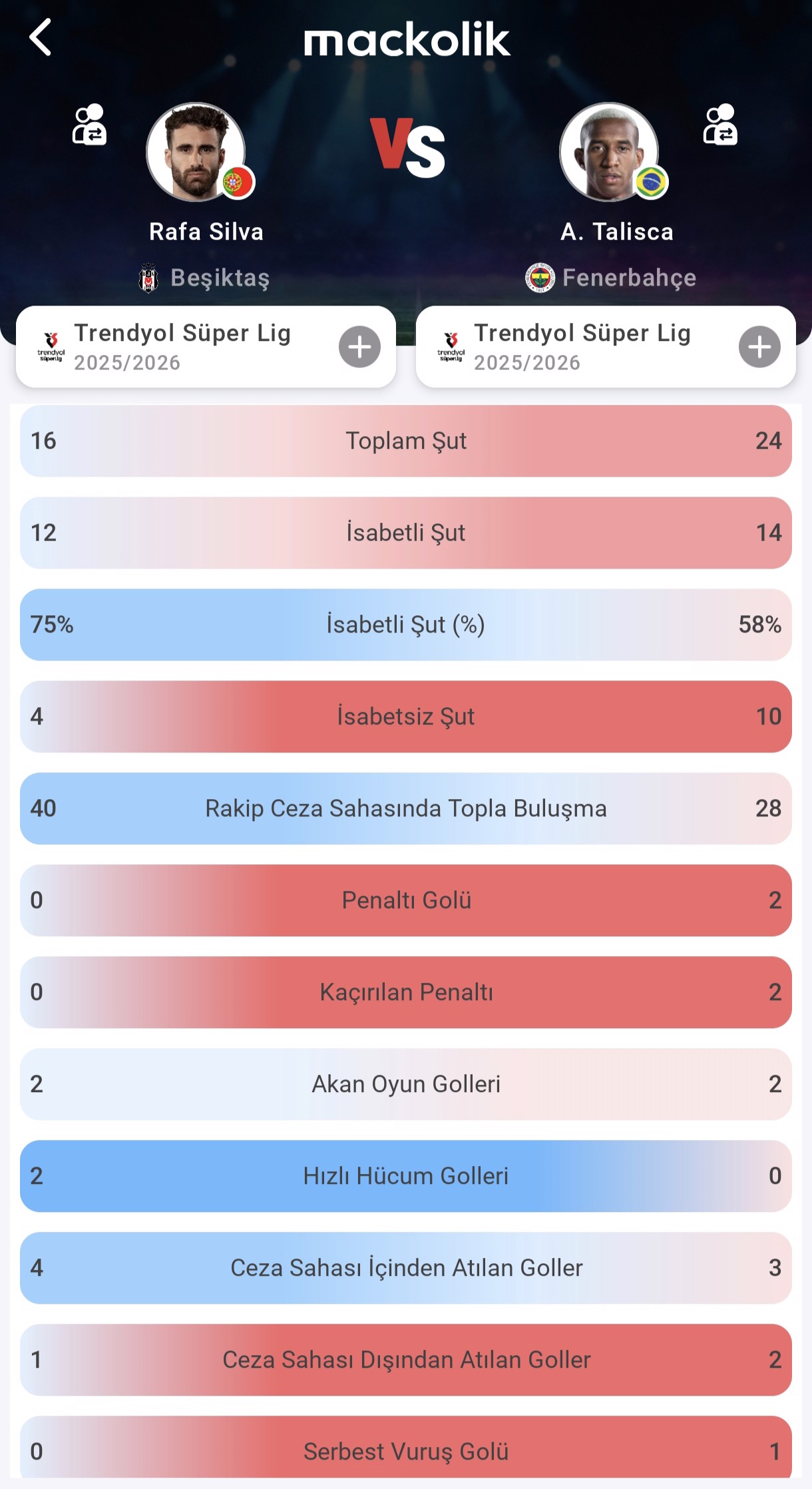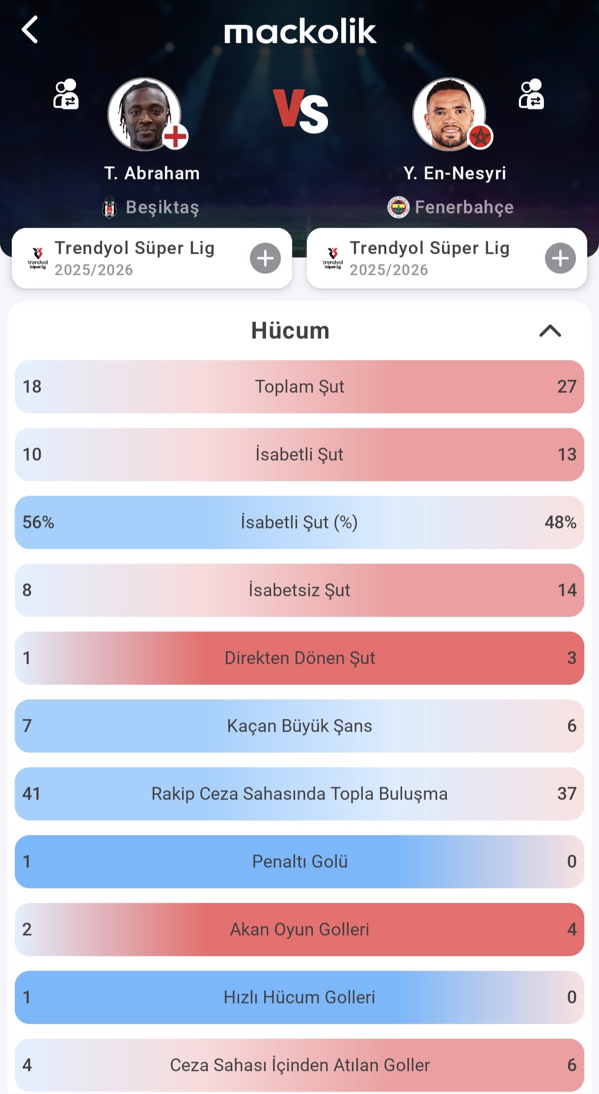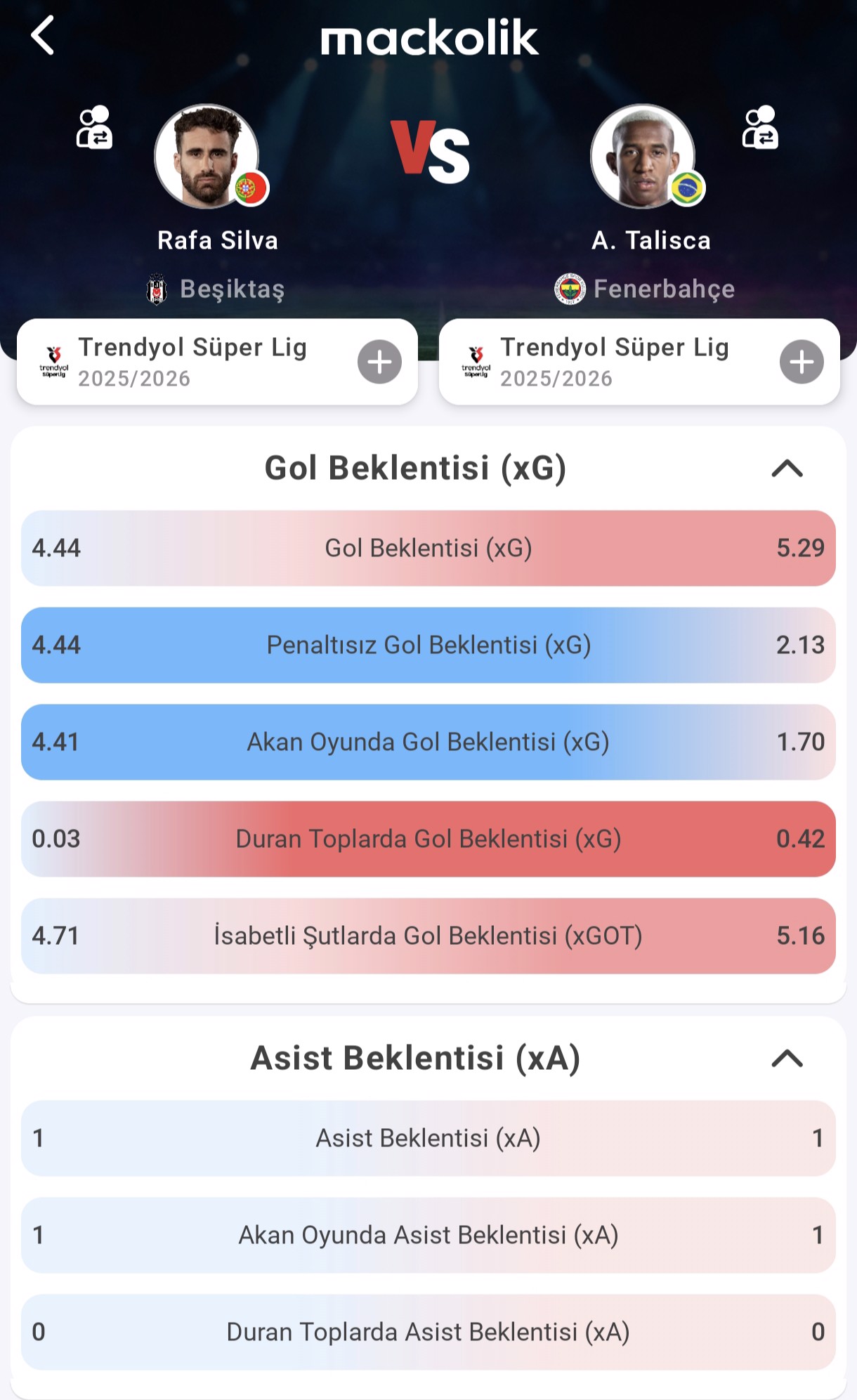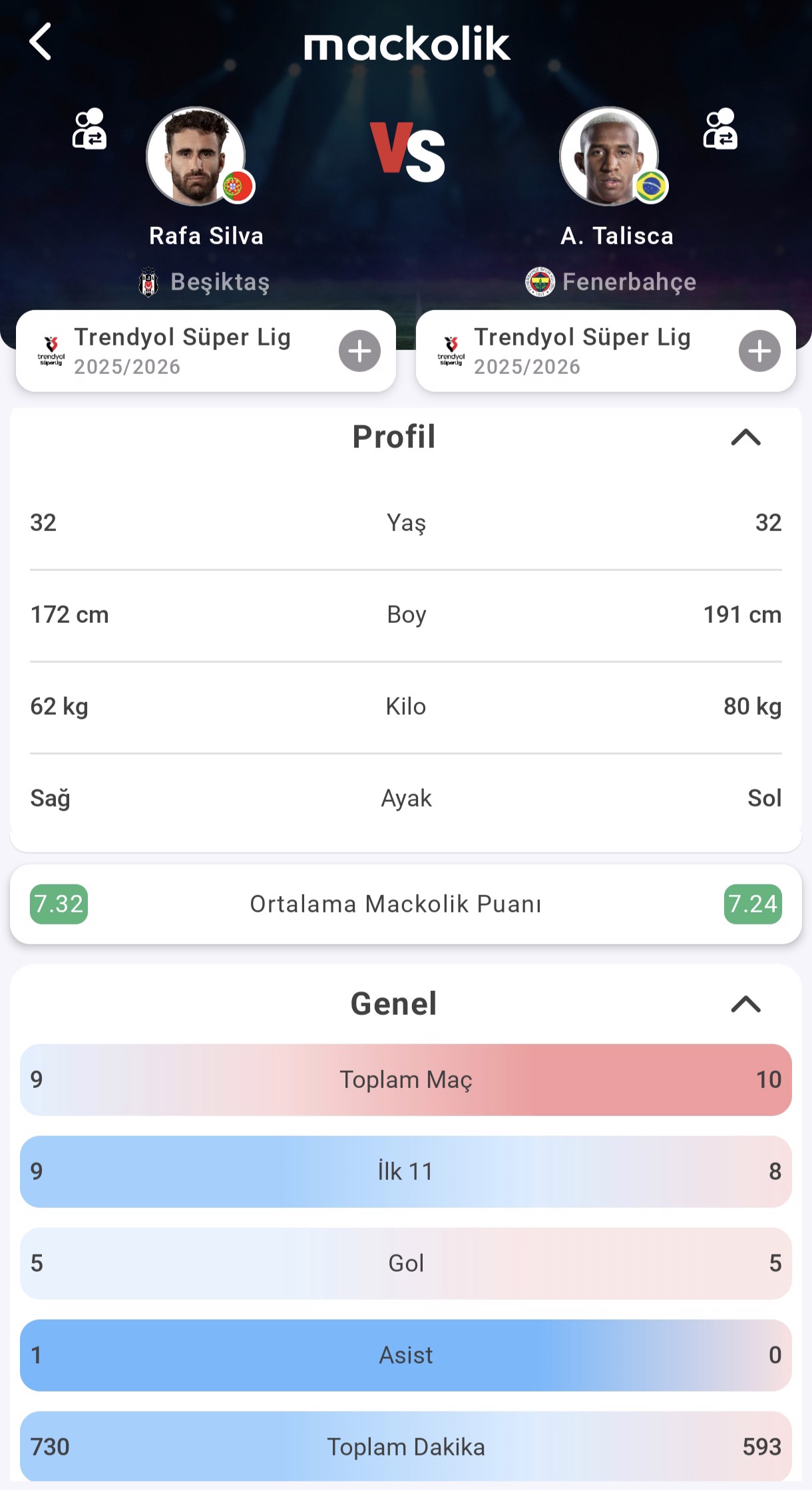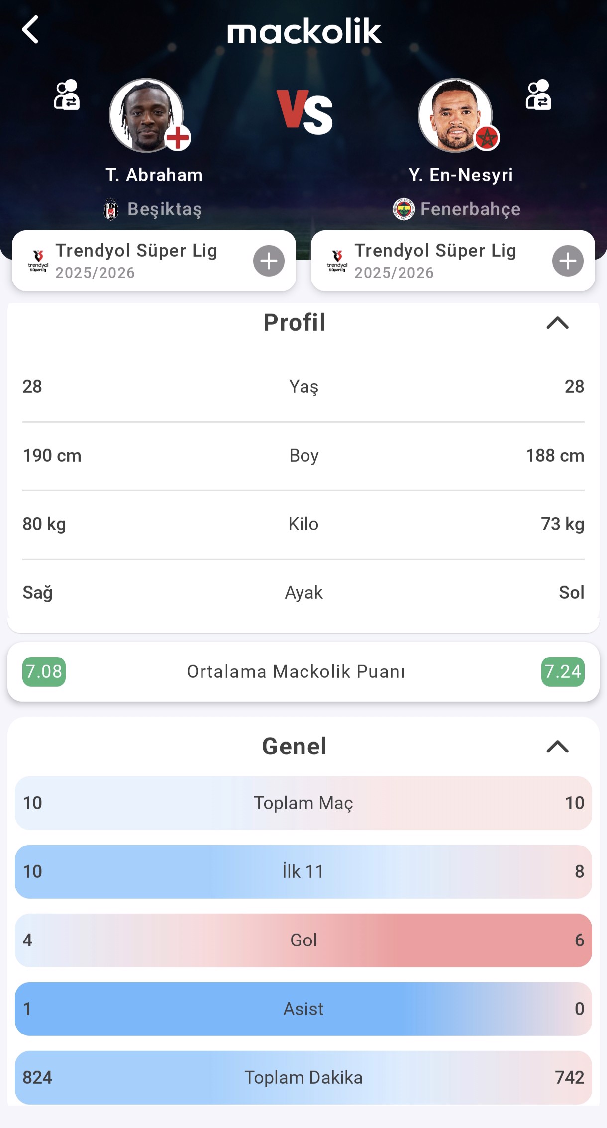 Mackolik'in "Oyuncu Karşılaştırma" özelliğiyle iki takımın yıldızlarını karşılaştırdık.