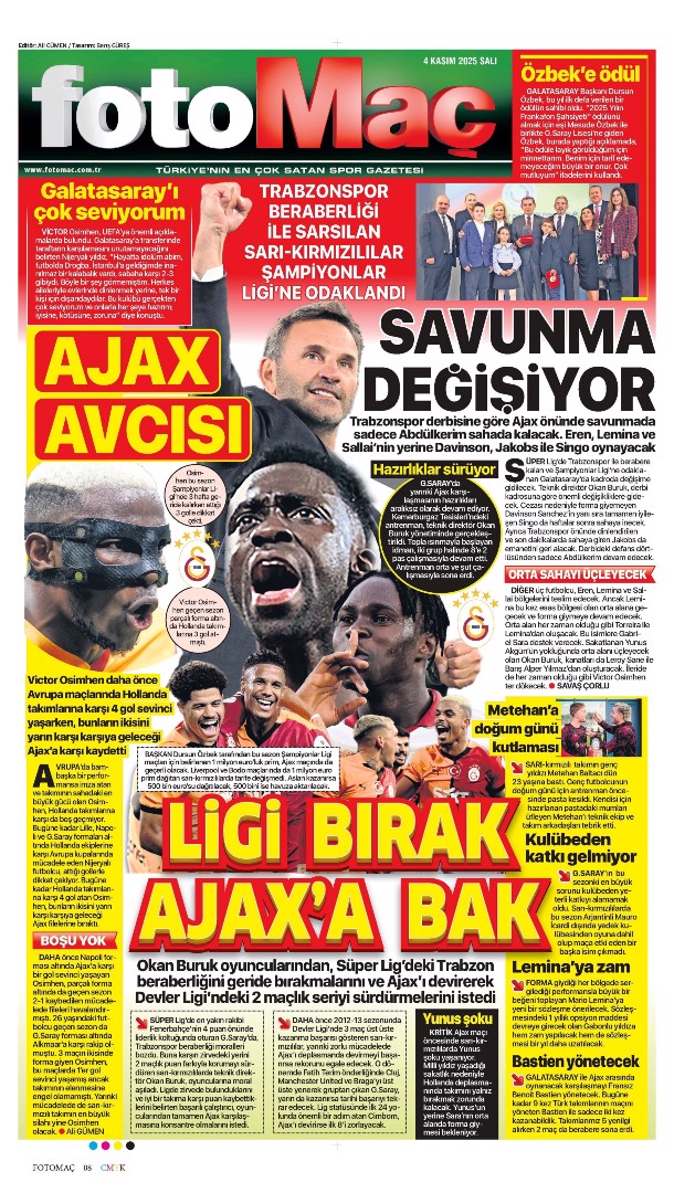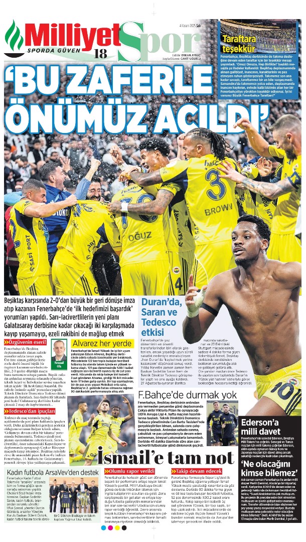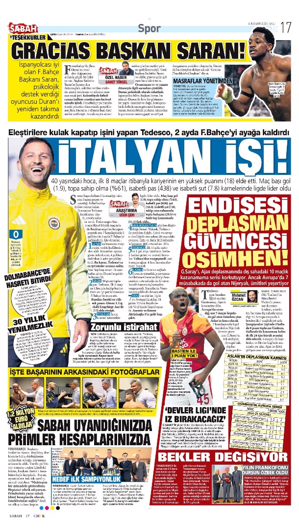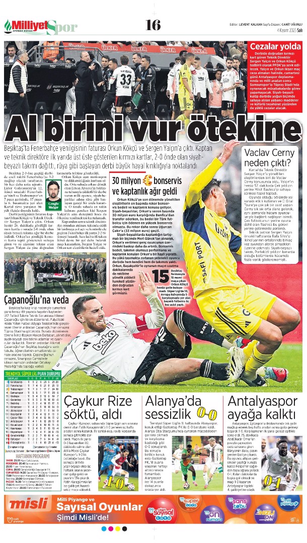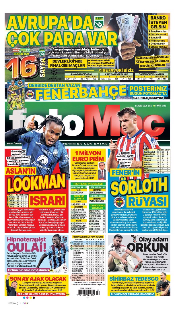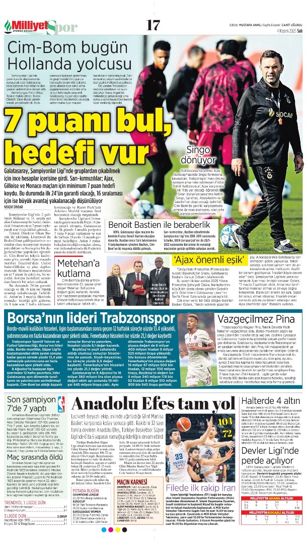 Gazetelerin spor sayfalarında günün öne çıkan manşetlerine göz atabilirsiniz.