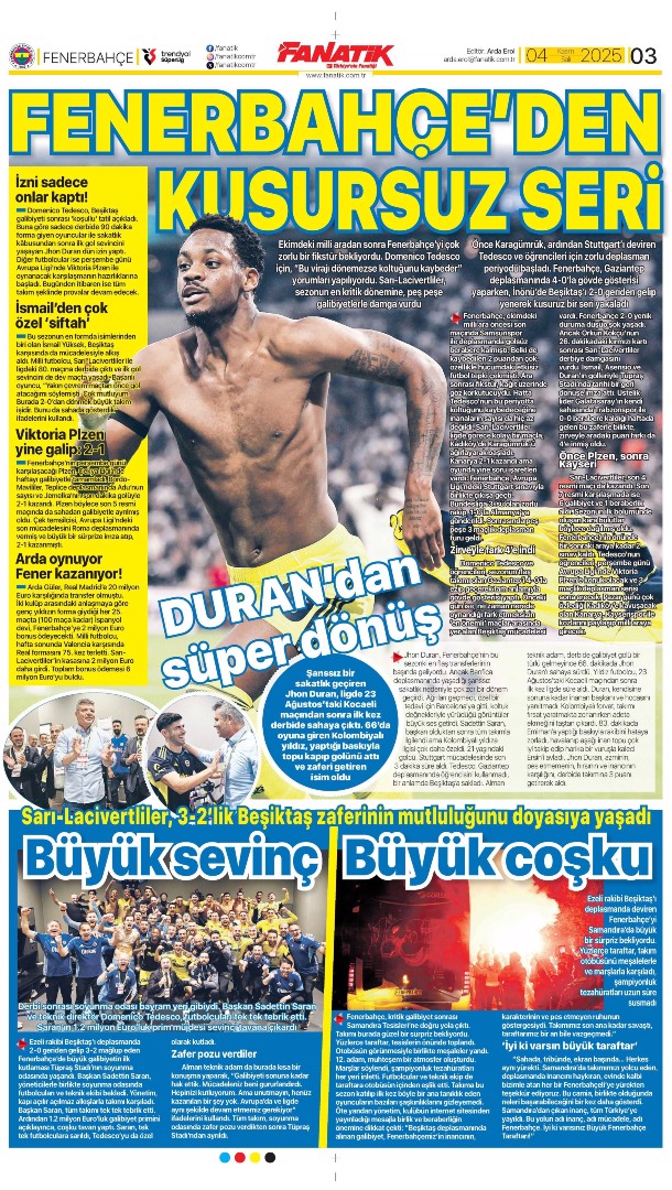 Gazetelerde günün spor sayfaları