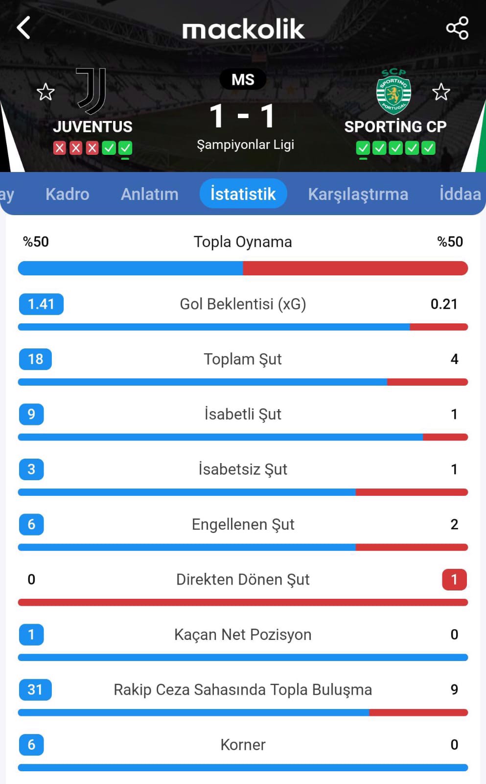 Karşılaşmada başka gol olmadı ve Juventus, Sporting CP ile 1-1 berabere kaldı.