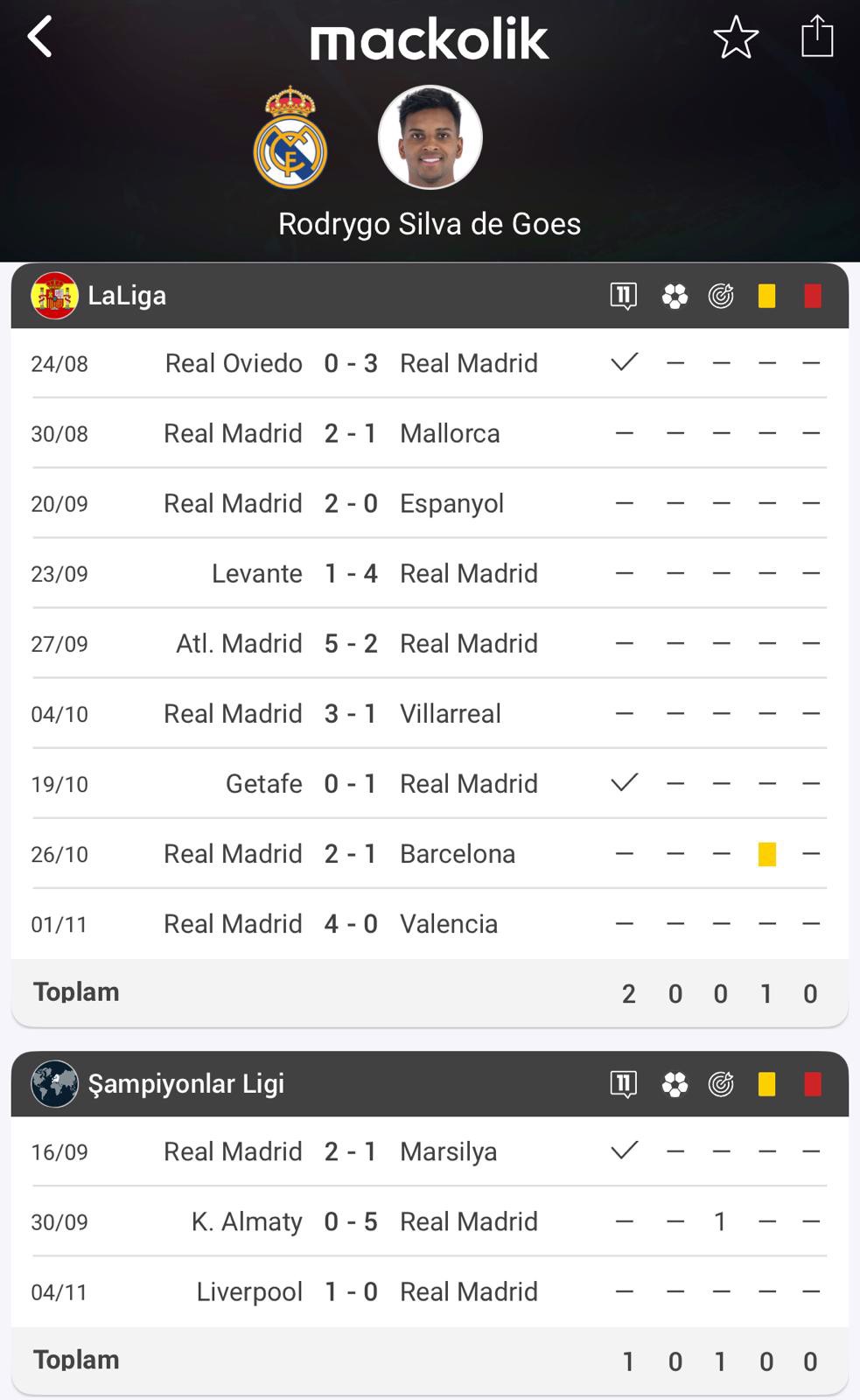Real Madrid formasıyla sekiz aydır gol atamayan Rodrygo, Liverpool karşısında da etkisiz bir performans sergiledi. Sağ kanatta görev yaptığı maçta istenilen katkıyı veremeyen futbolcu, Anfield'daki mücadeleyi bir kez daha gol atamadan tamamladı.