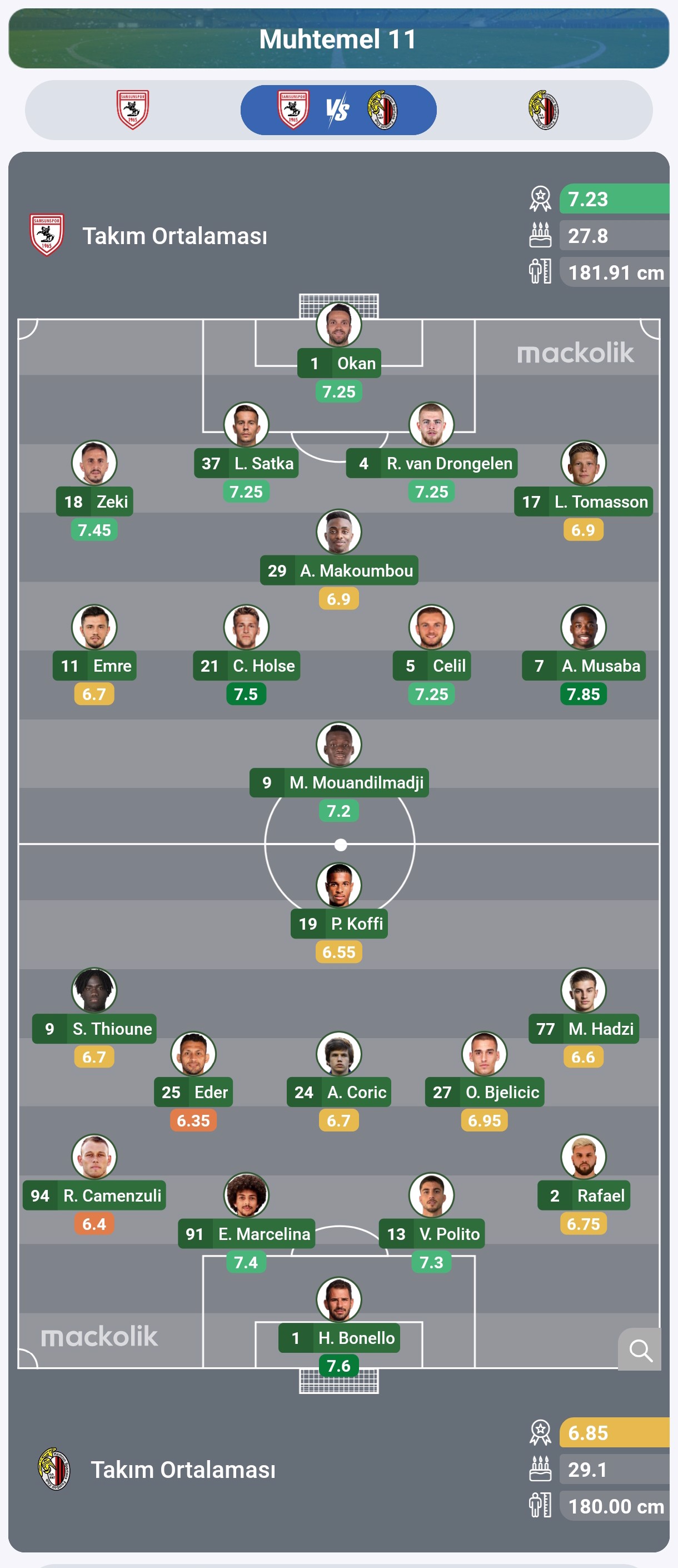 Samsunspor: Okan, Zeki, Satka, van Drongelen, Tomasson, Makoumbou, Emre, Holse, Celil, Musba, Mouandilmadji