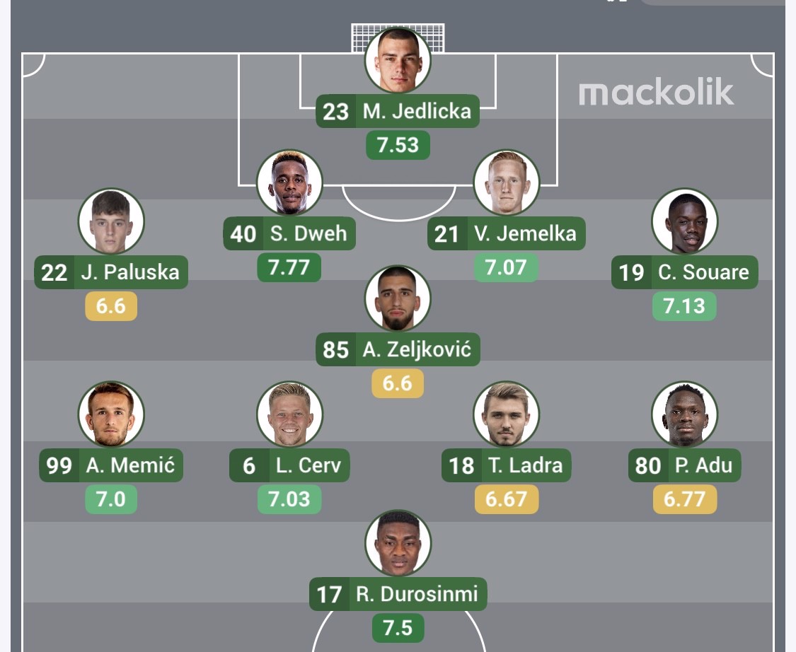 Viktoria Plzen: Jedlicka, Paluska, Dweh, Jemelka, Souare, Zeljkovic, Memic, Cerv, Ladra, Adu, Durosinmi