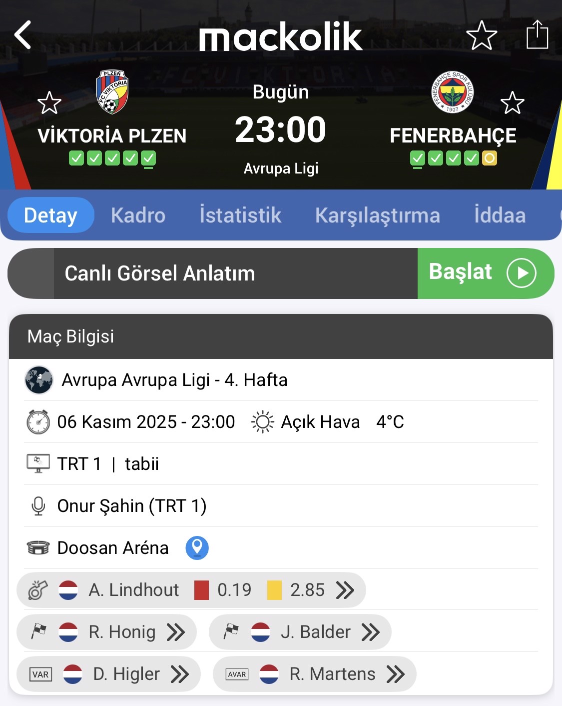 Mücadelede Lindhout'un yardımcılıklarını Rogier Honig ve Johan Balder yapacak. Karşılaşmanın 4. hakemi ise Jannick Van Der Laan olacak.