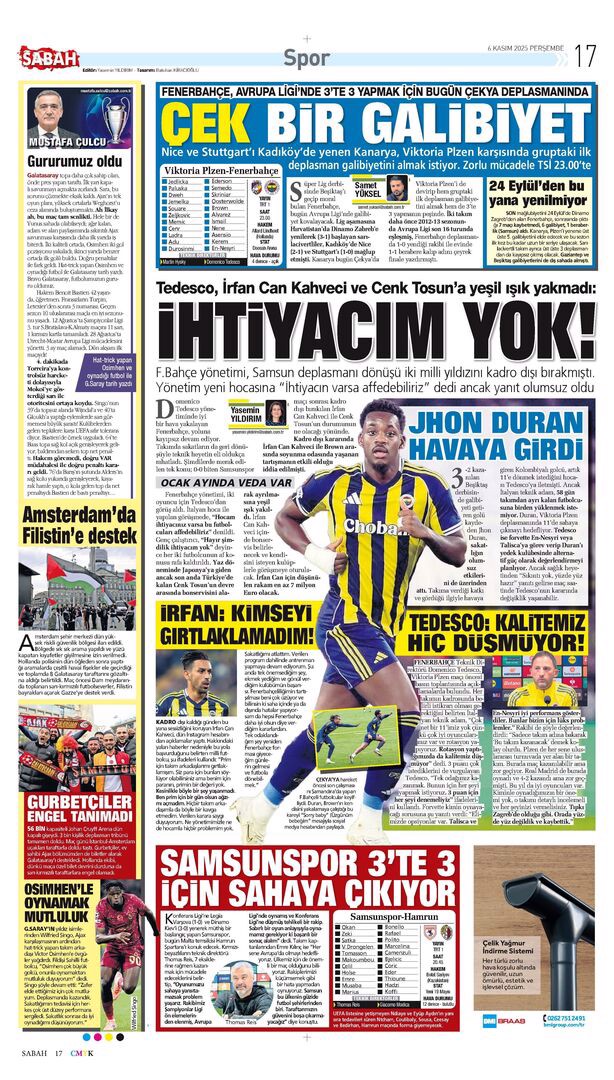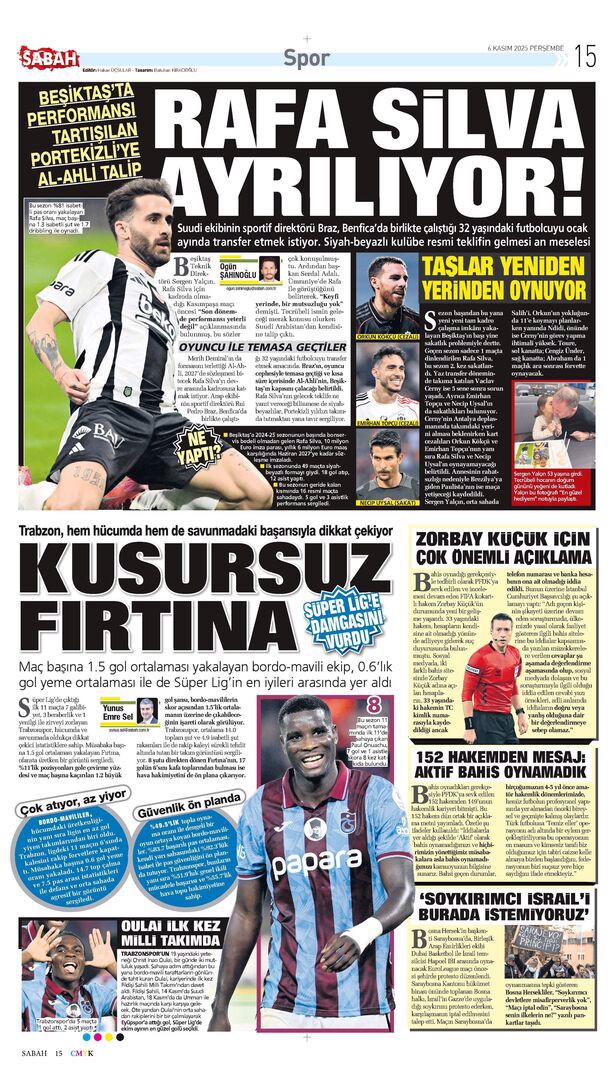 Gazetelerde günün spor sayfaları