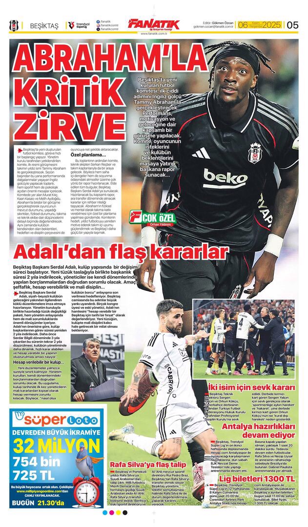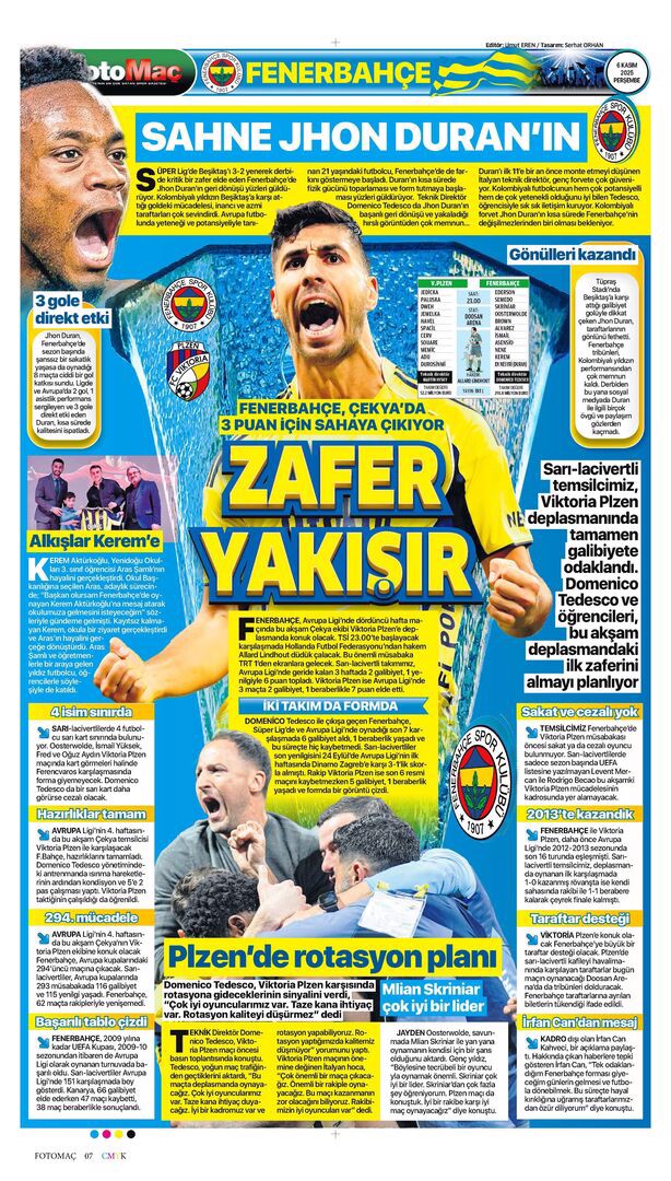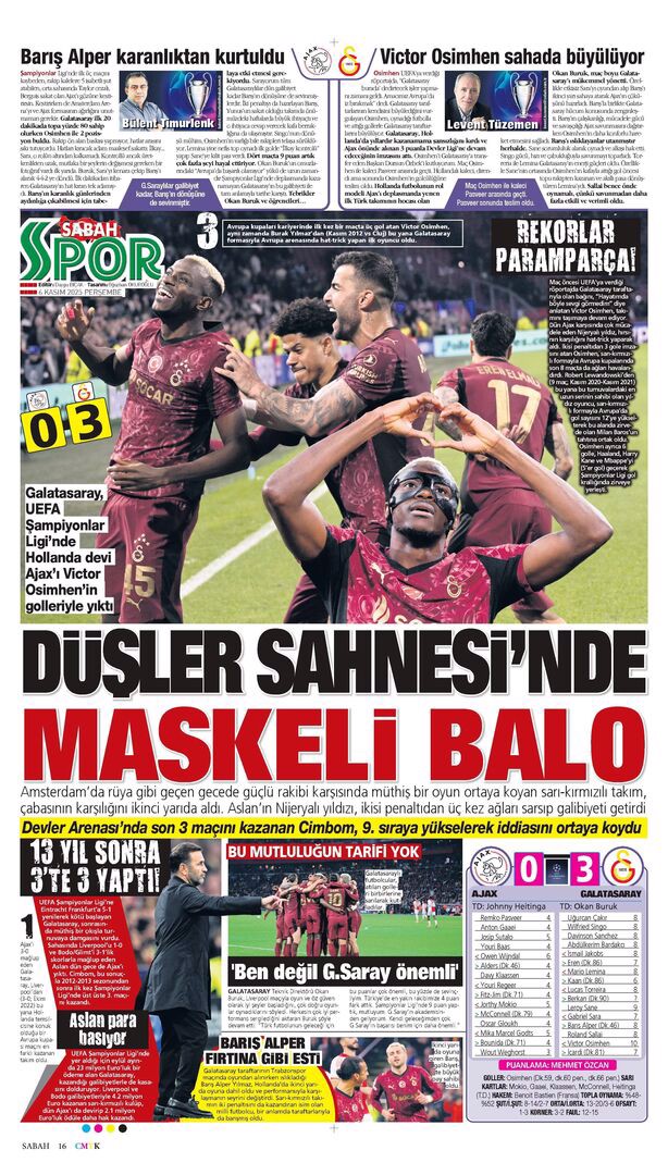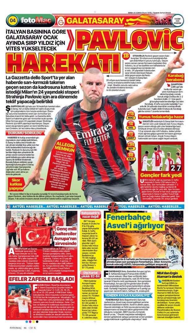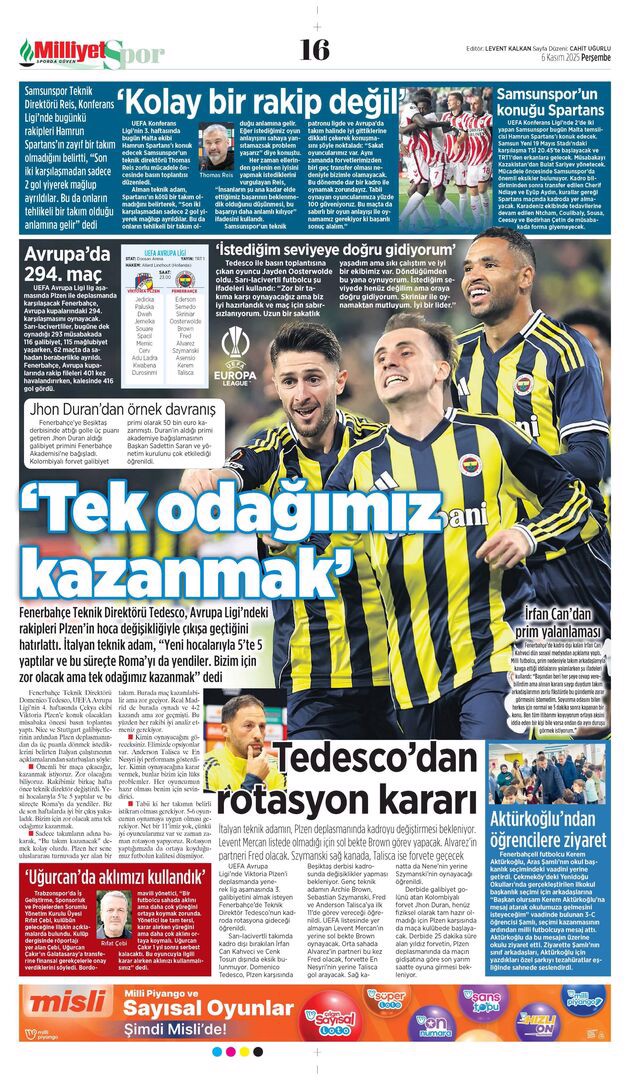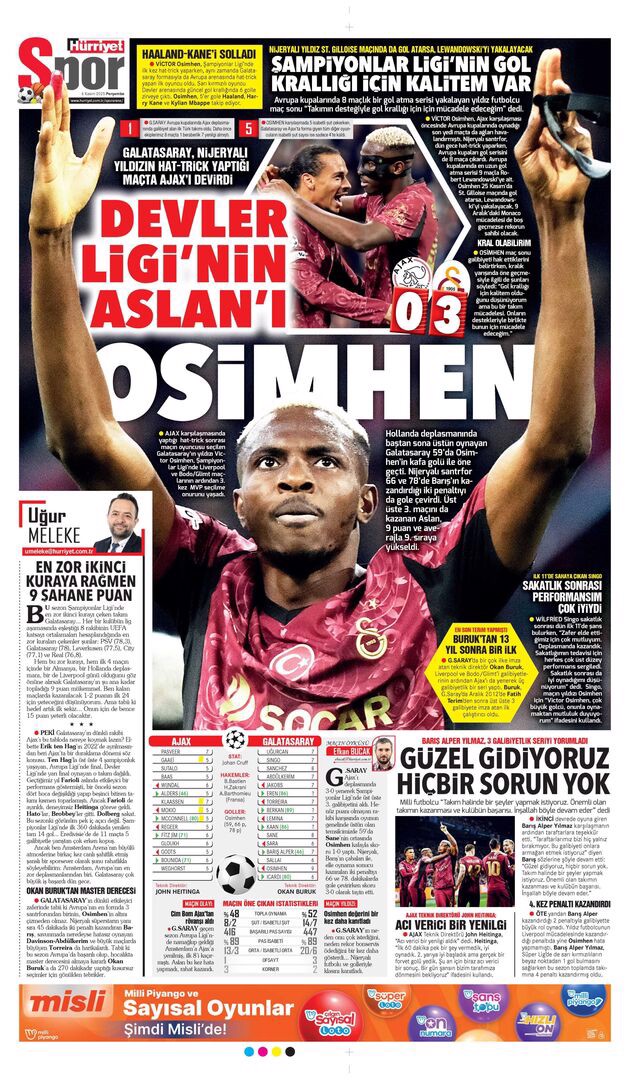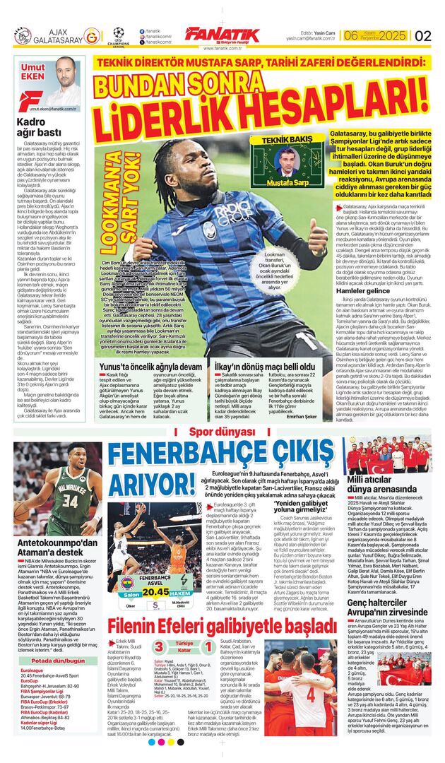 Gazetelerin spor sayfalarında günün öne çıkan manşetlerine göz atabilirsiniz.