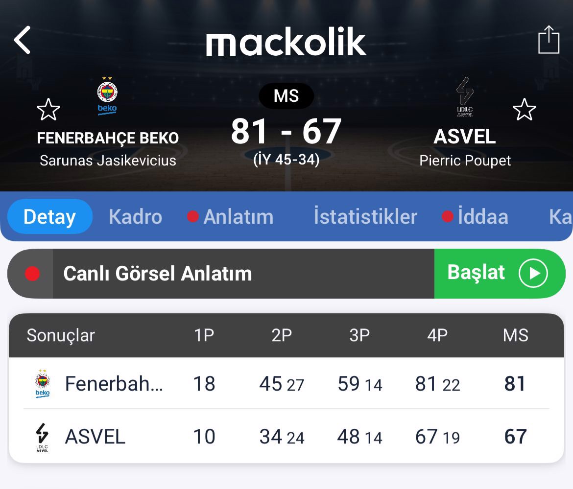 Fenerbahçe, bu sonuçla birlikte EuroLeague'de 4 galibiyet ve 5 yenilgi yaşadı.