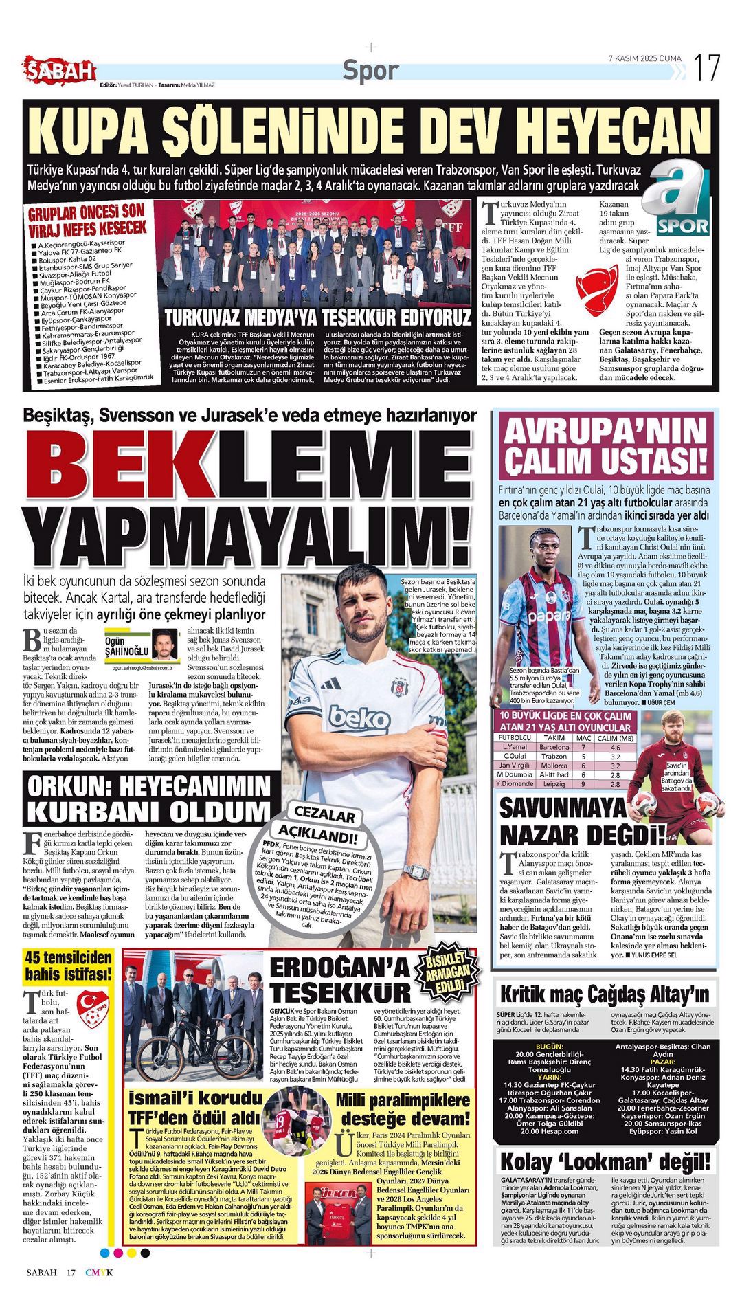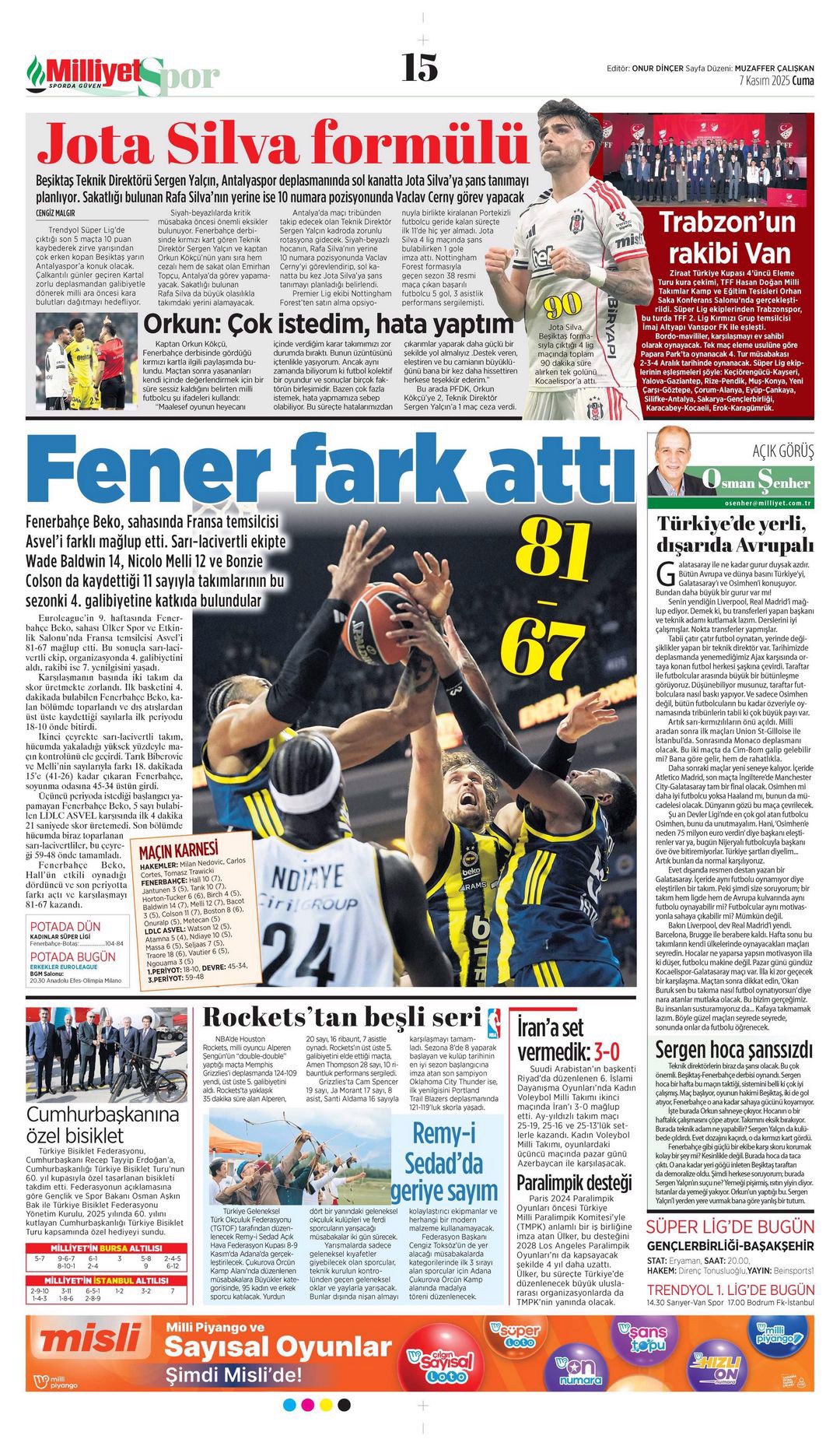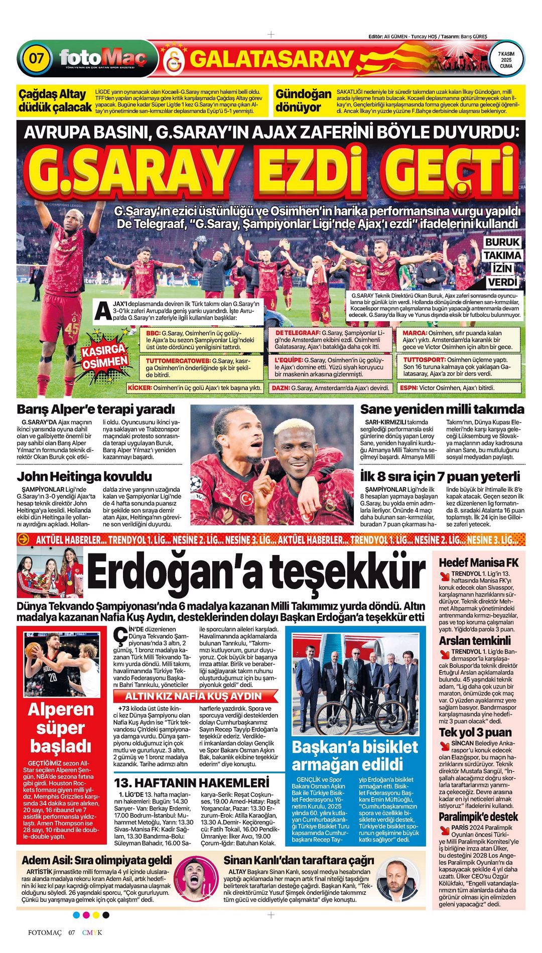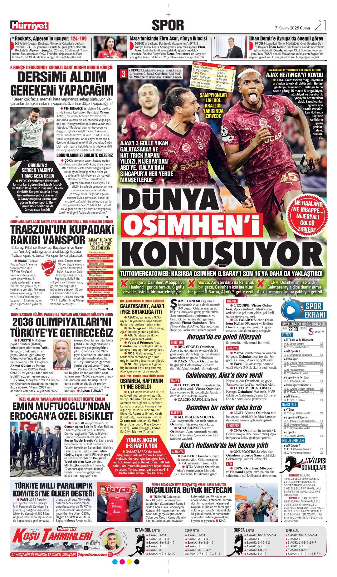 Gazetelerin spor sayfalarında günün öne çıkan manşetlerine göz atabilirsiniz.