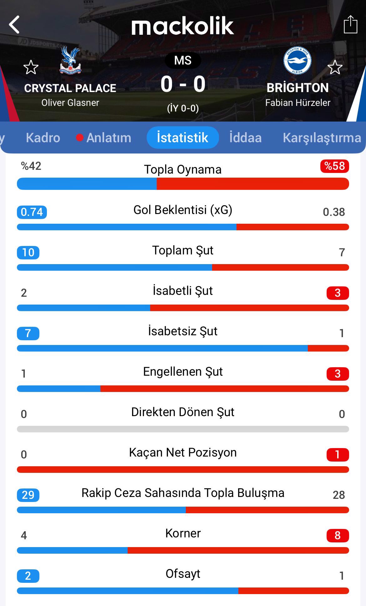 Selhurst Park'ta oynanan ve Ferdi Kadıoğlu'nun ilk 11'de başladığı maçta gol sesi çıkmadı.