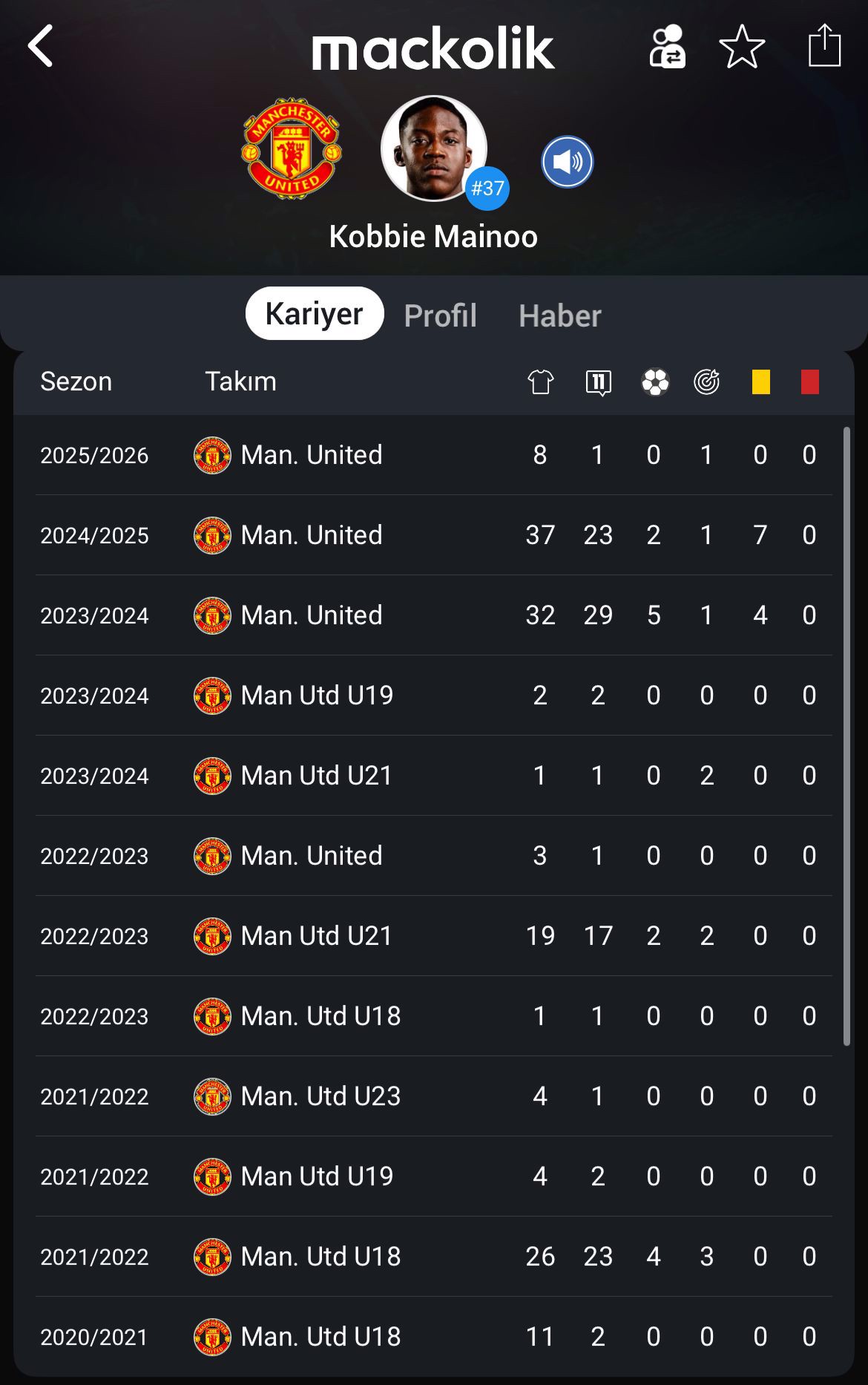 20 yaşındaki orta saha oyuncusu Kobbie Mainoo, Teknik Direktör Ruben Amorim yönetiminde yedek kulübesine düşmüş durumda ve bu sezon Premier Lig'de sadece 138 dakika süre alabildi. Avrupa kupalarından ve Lig Kupası'ndan da elenen Kırmızı Şeytanlar'da düzenli forma giymesi zorlaşan Mainoo'nun, Ocak ayında Old Trafford'dan ayrılmadığı takdirde Thomas Tuchel'in 2026 Dünya Kupası kadrosuna girmesi zor görünüyor. Mainoo, son kadroda da yer almadı.