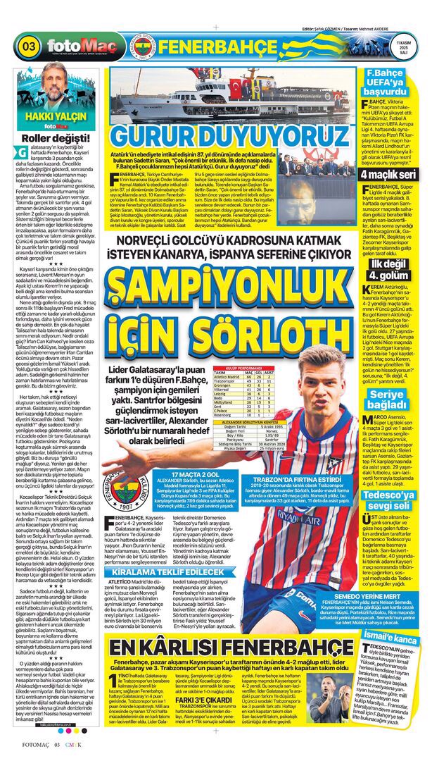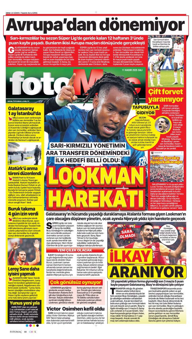 Gazetelerin spor sayfalarında günün öne çıkan manşetlerine göz atabilirsiniz.