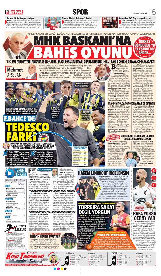 Gazetelerde günün spor sayfaları