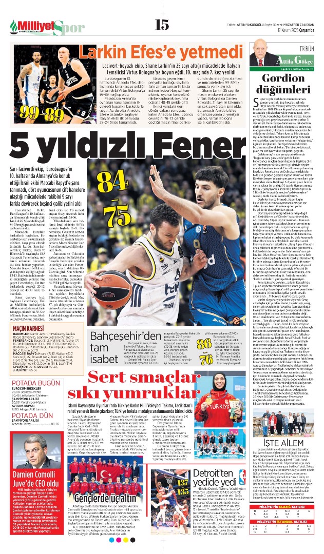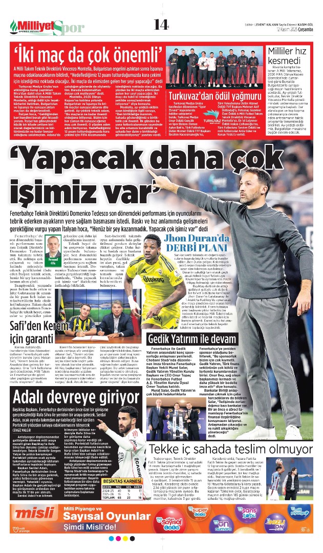 Gazetelerin spor sayfalarında günün öne çıkan manşetlerine göz atabilirsiniz.