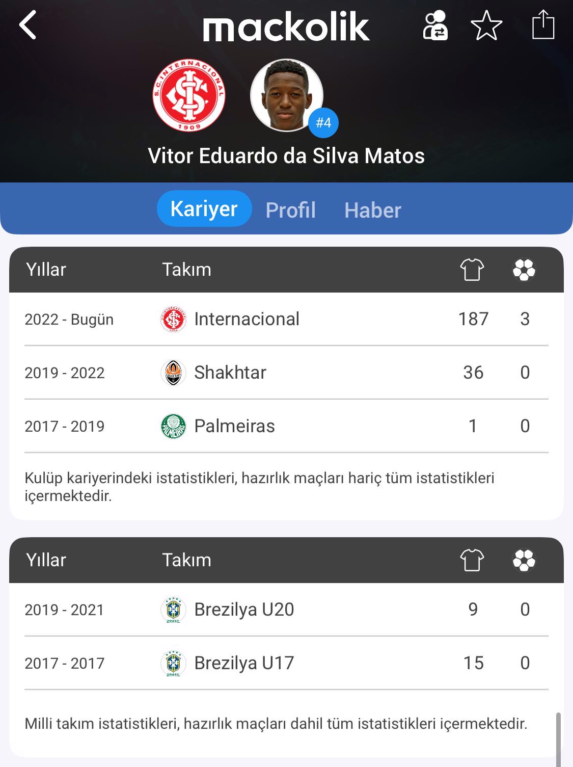 Ukrayna'daki savaş nedeniyle bedelsiz olarak Internacional'e transfer olan Vitao, bu sezon 47 maça çıktı ve 1 asiste imza attı.