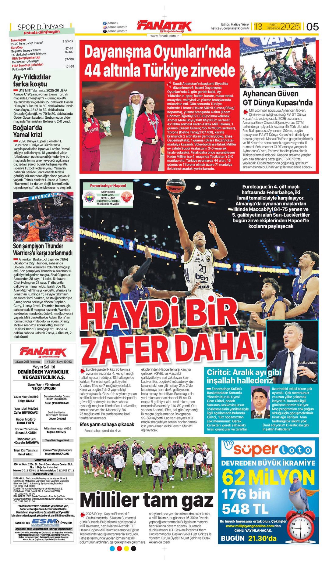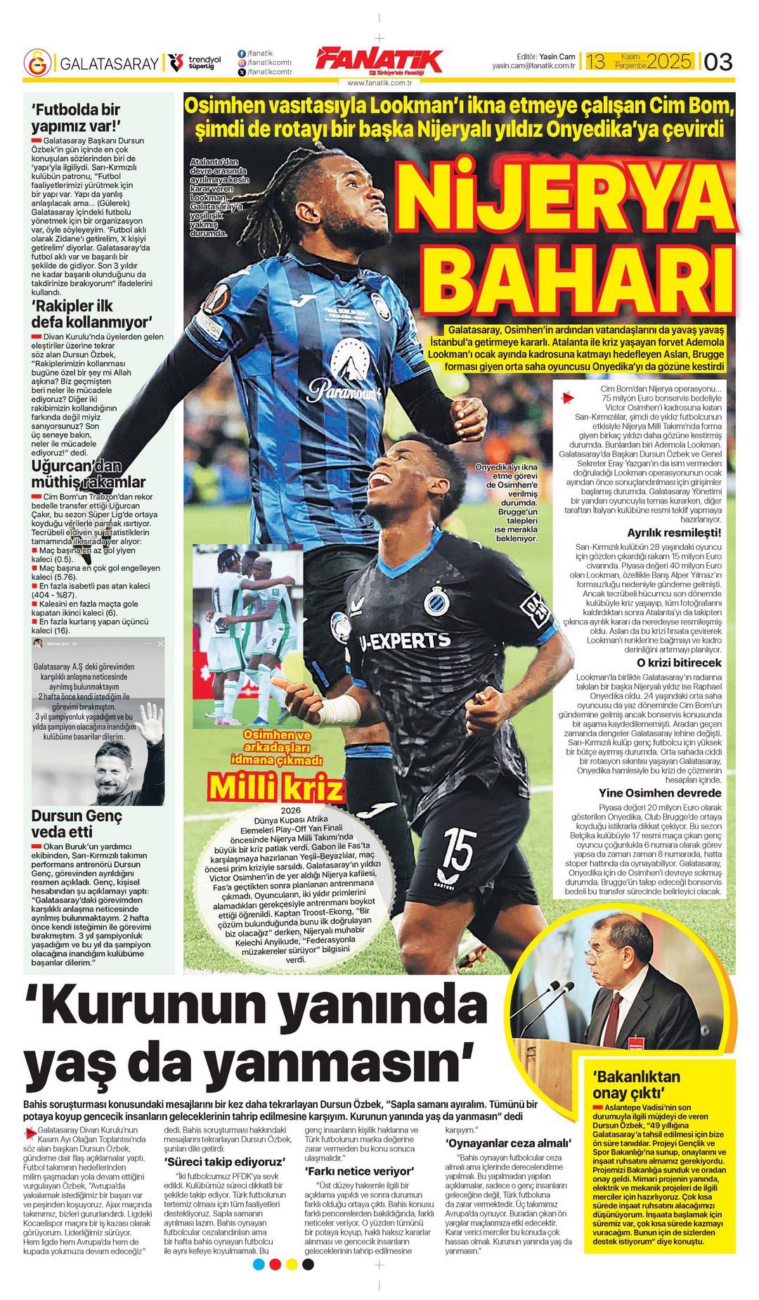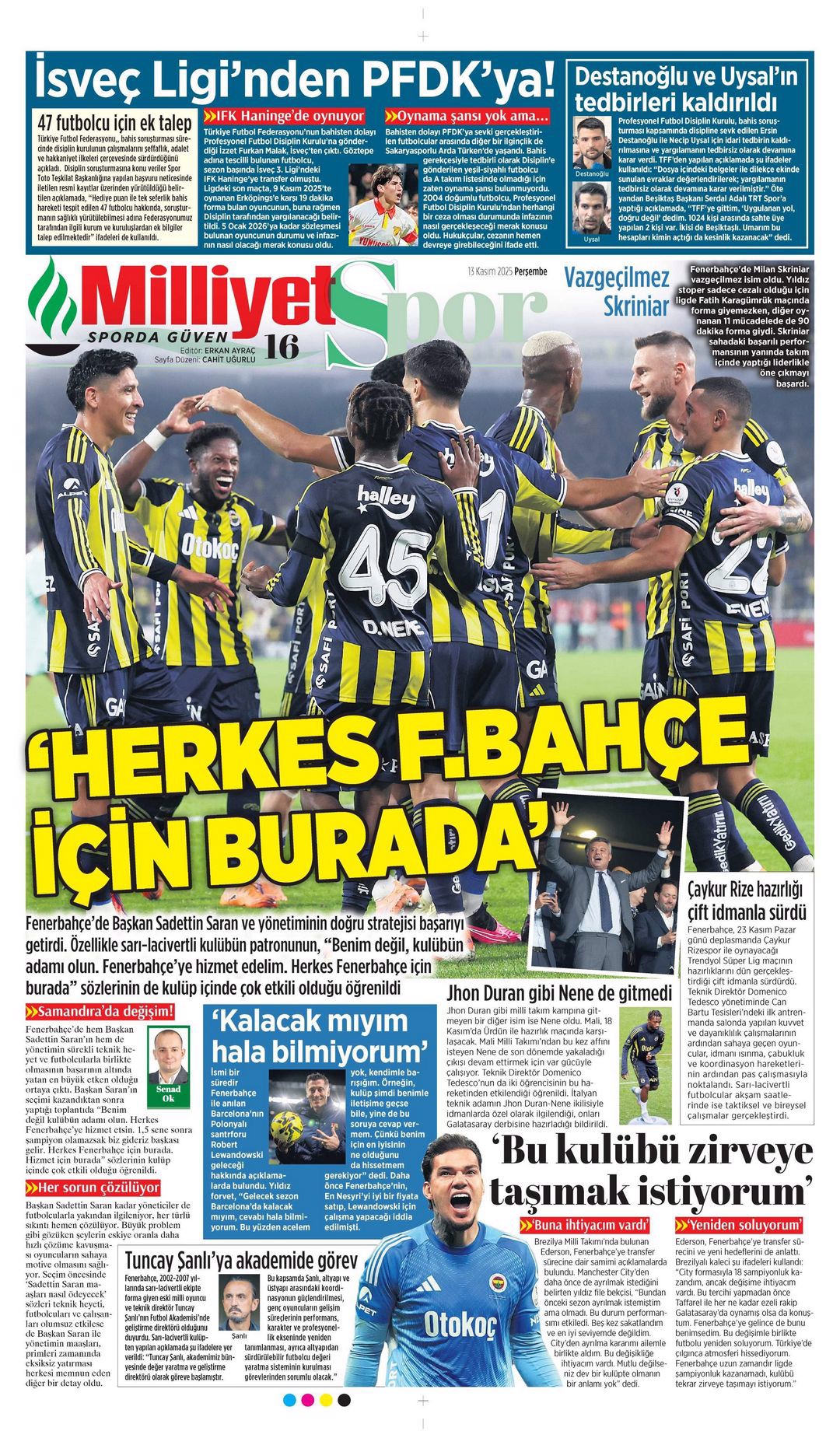Gazetelerin spor sayfalarında günün öne çıkan manşetlerine göz atabilirsiniz.