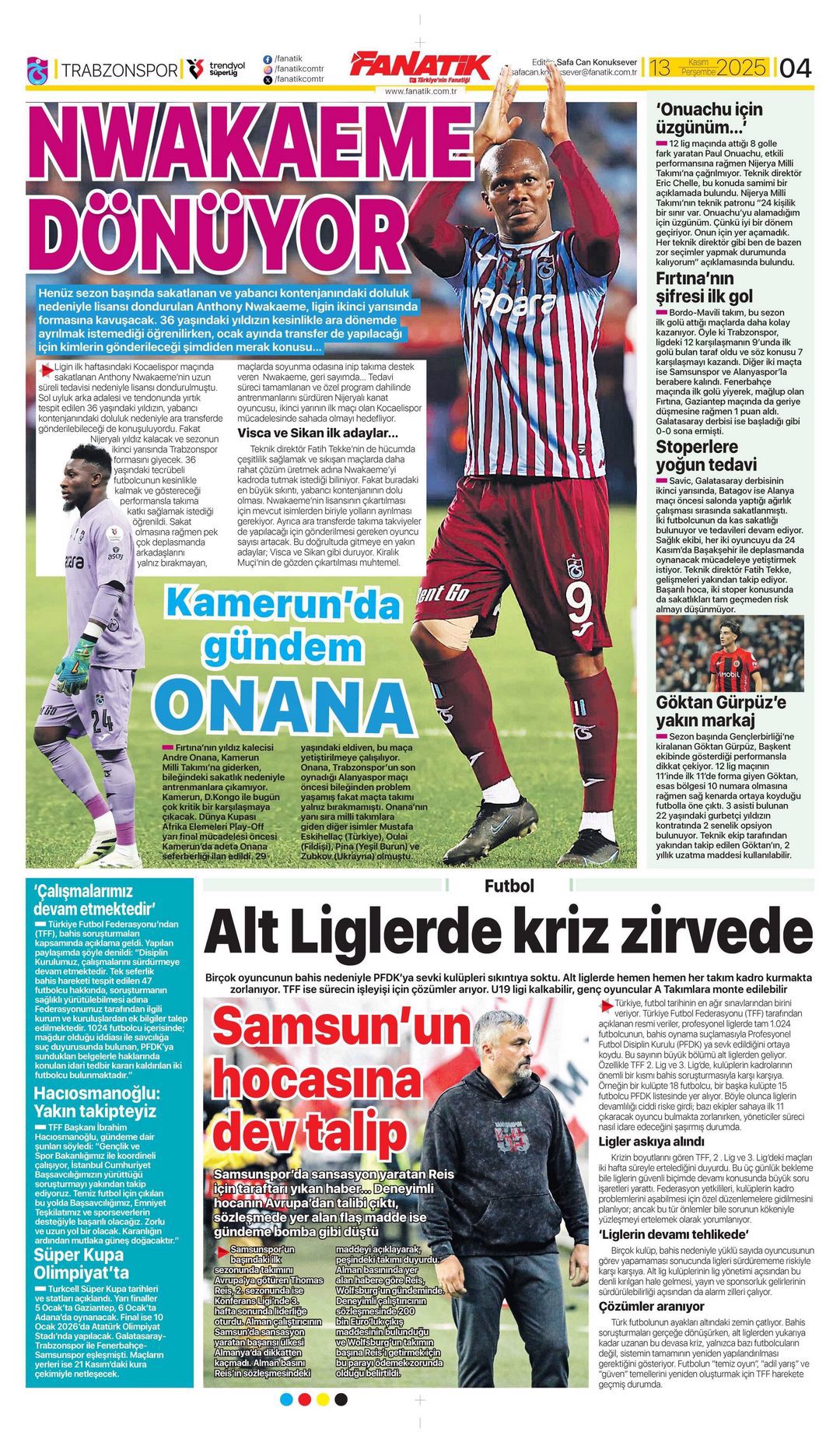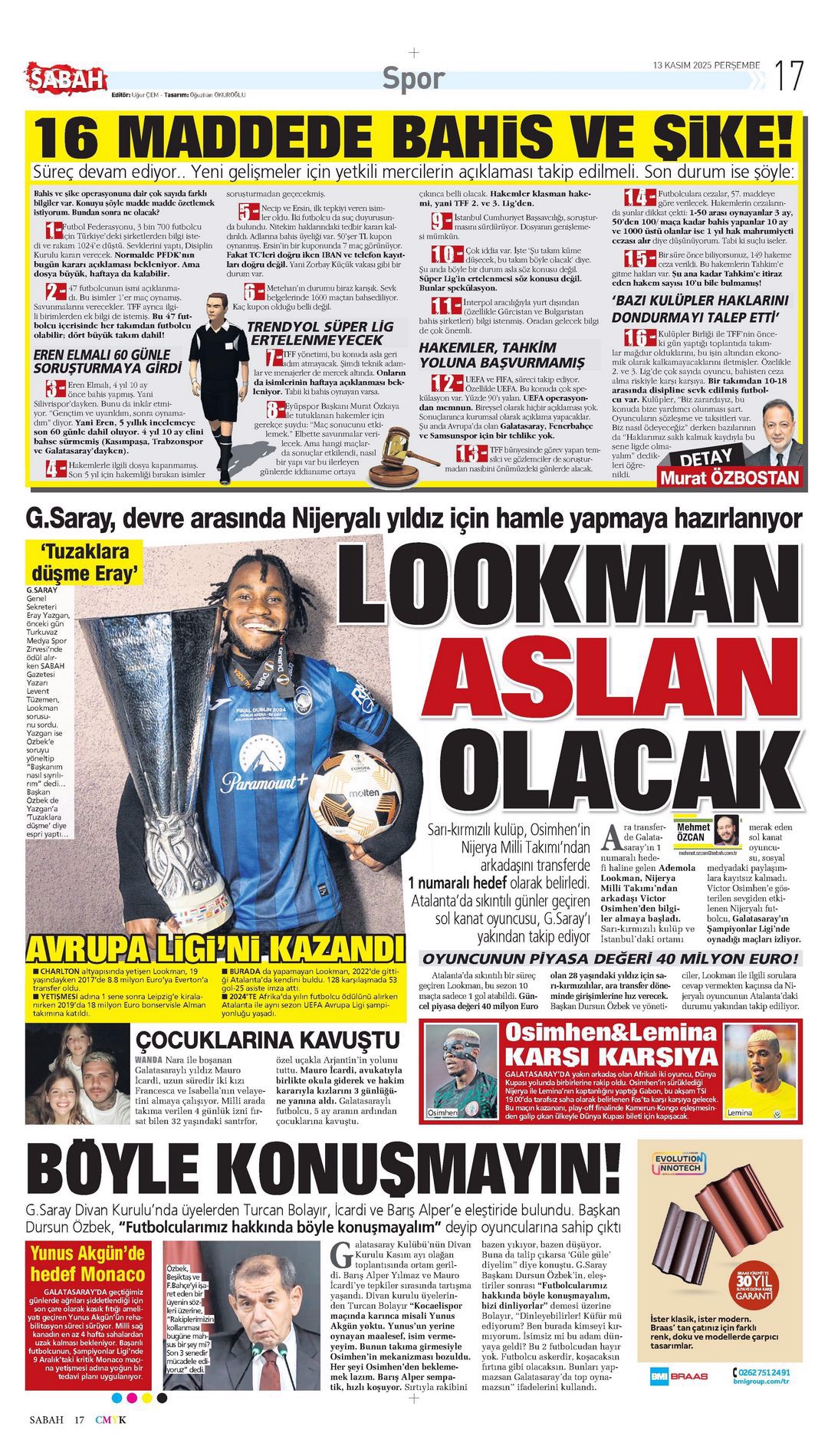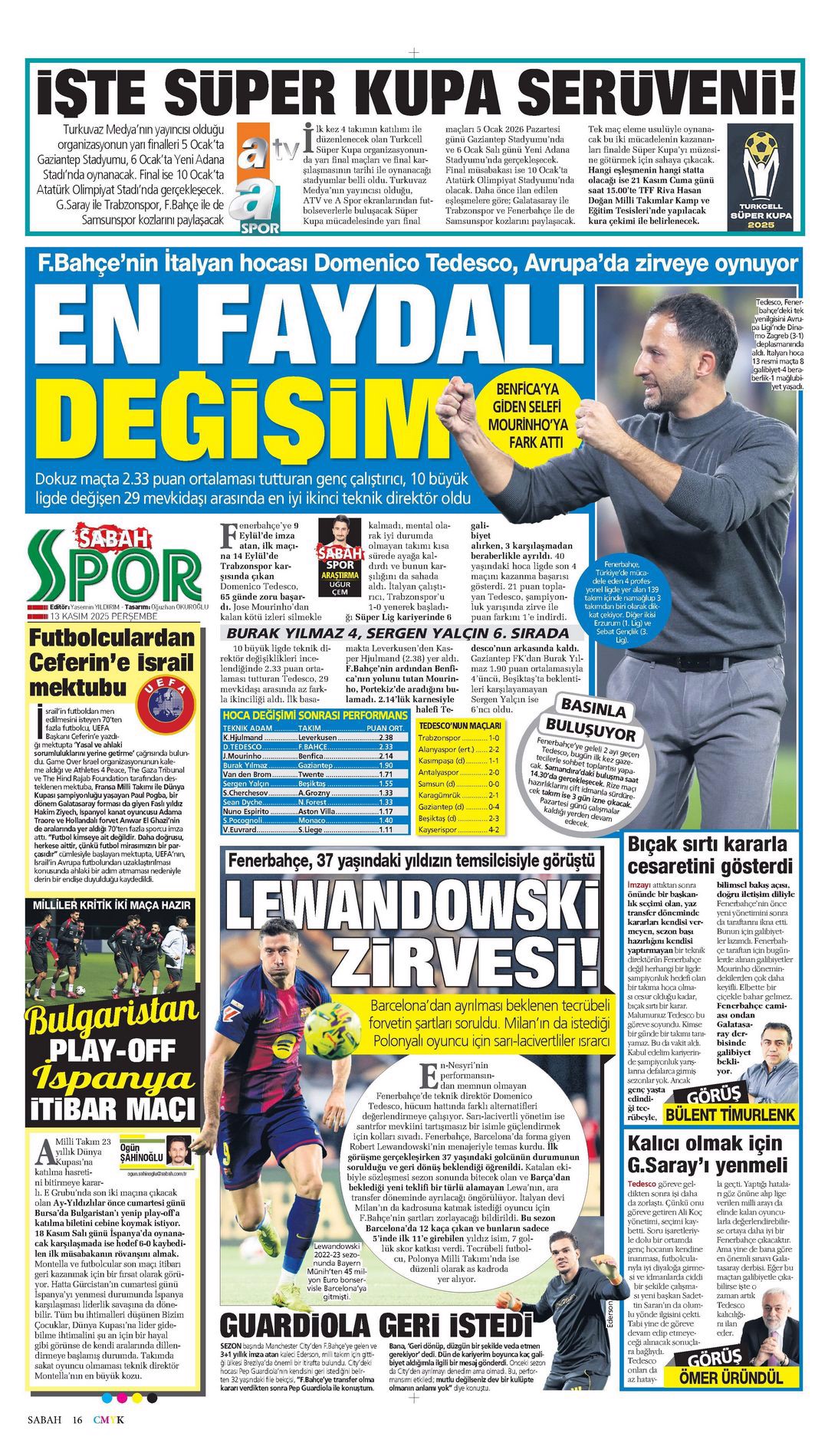 Gazetelerin spor sayfalarında günün öne çıkan manşetlerine göz atabilirsiniz.