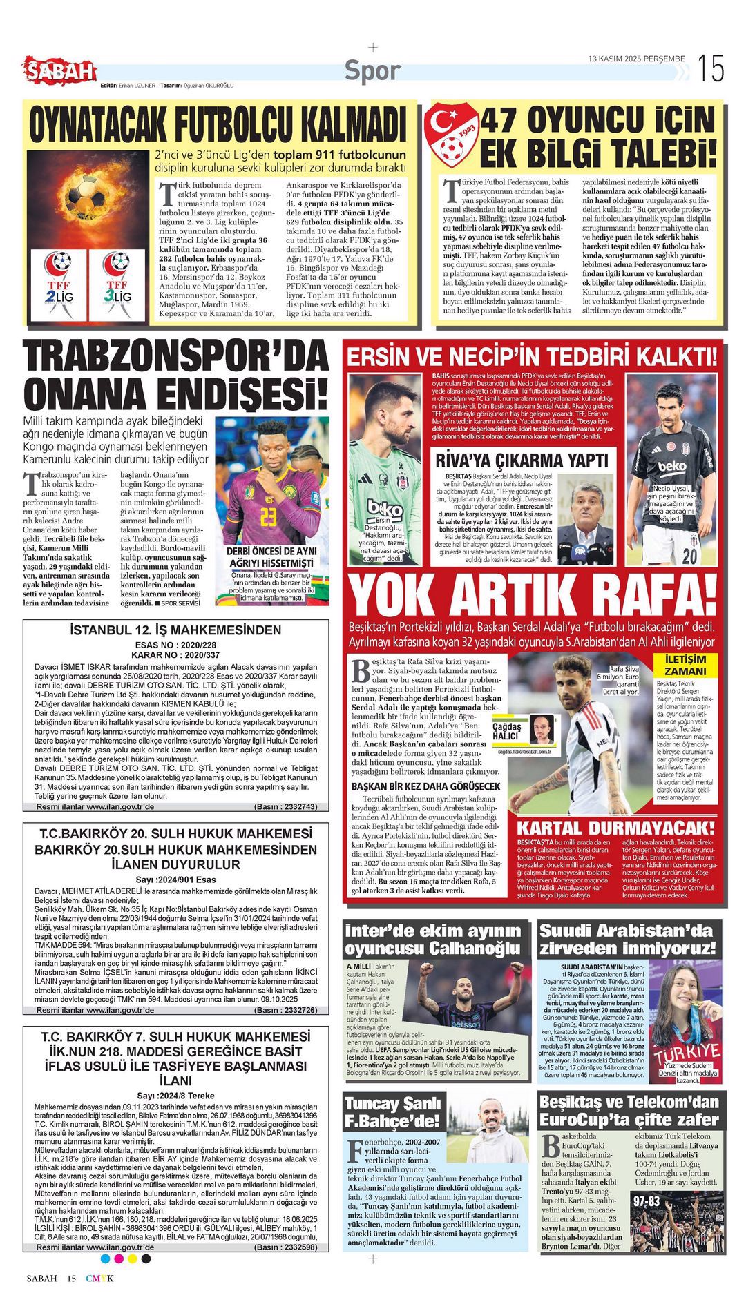 Gazetelerde günün spor sayfaları