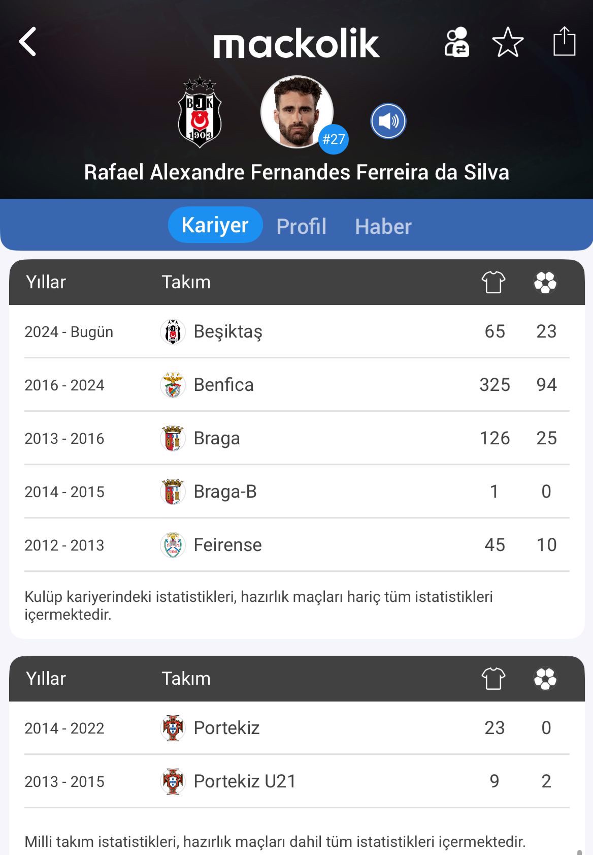 32 yaşındaki Portekizli, bu sezon Beşiktaş formasıyla 16 maça çıkıp 5 gol, 3 asist ile oynadı.