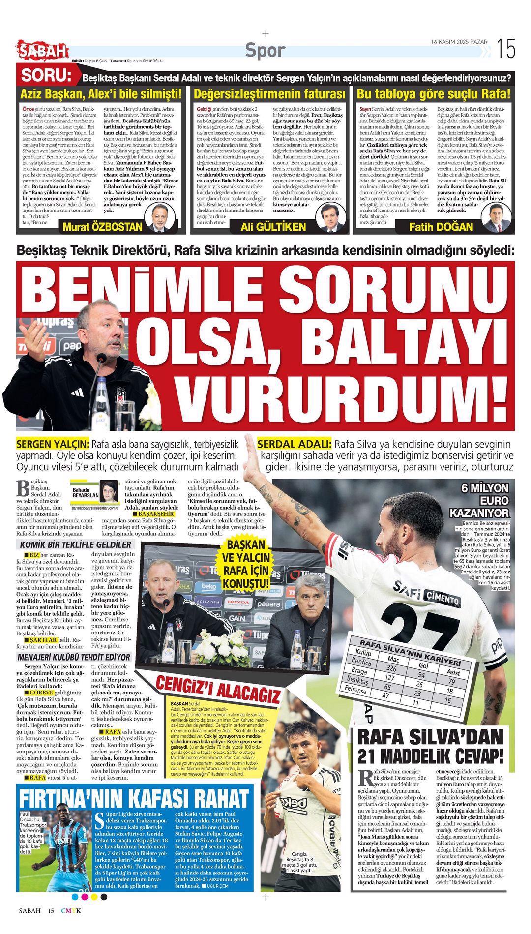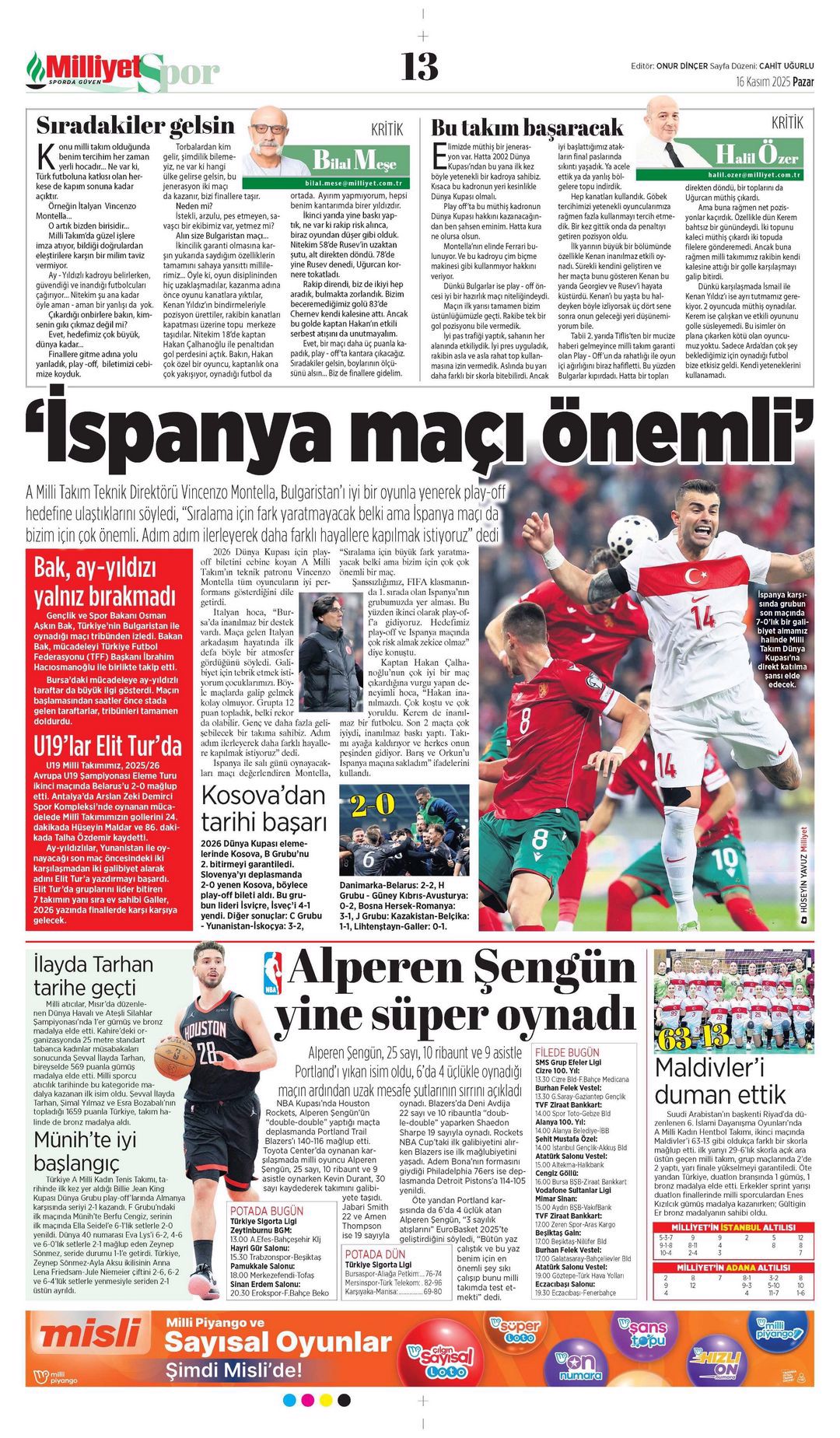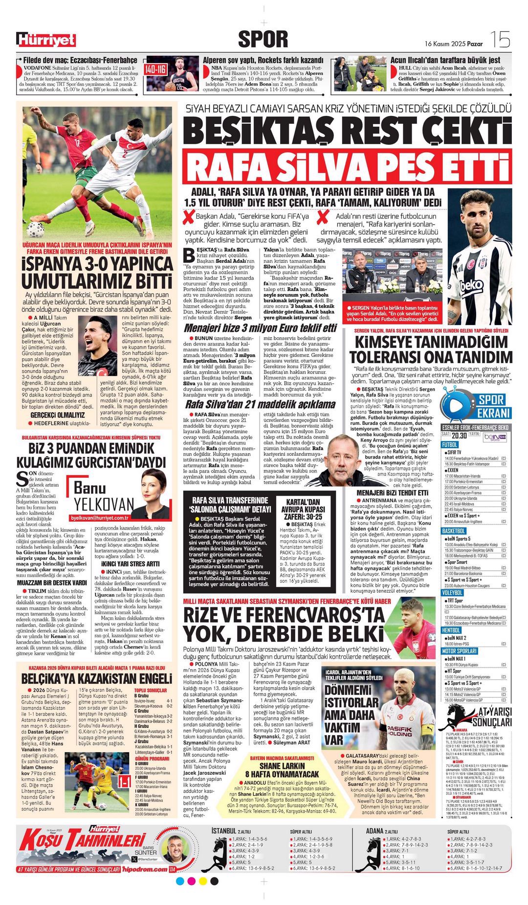 Gazetelerde günün spor sayfaları