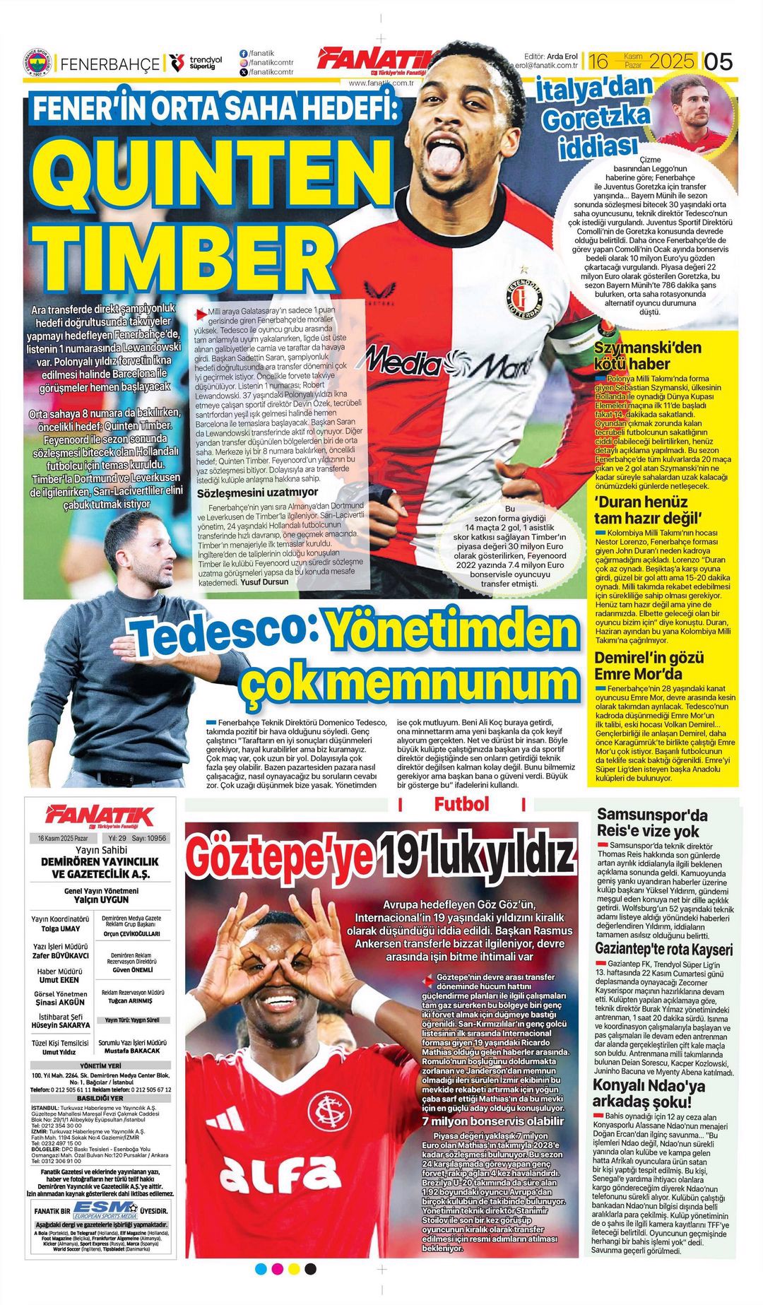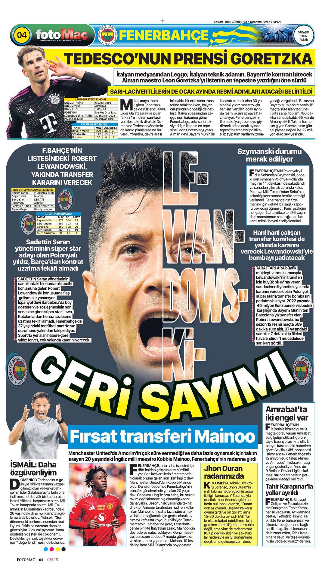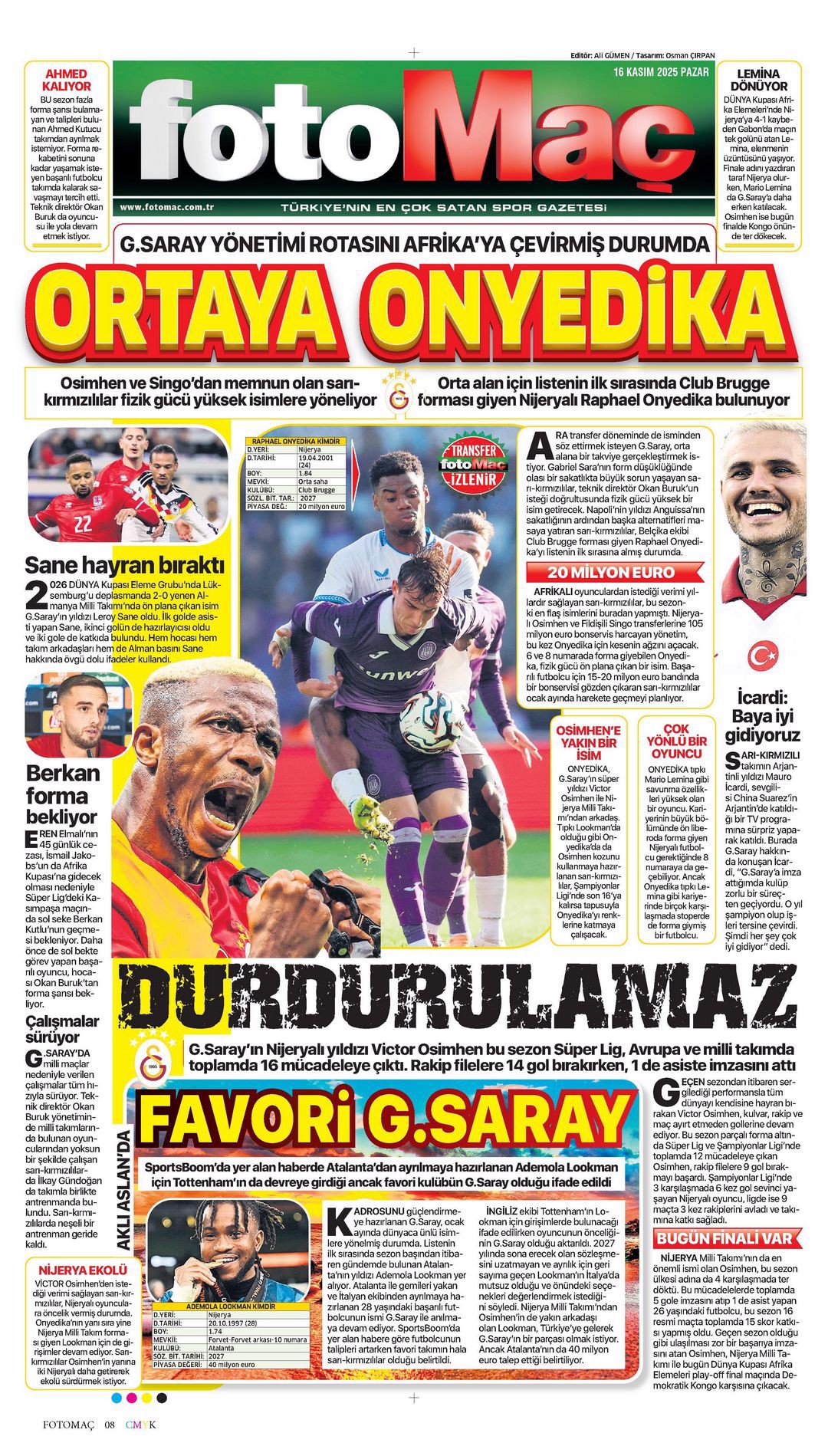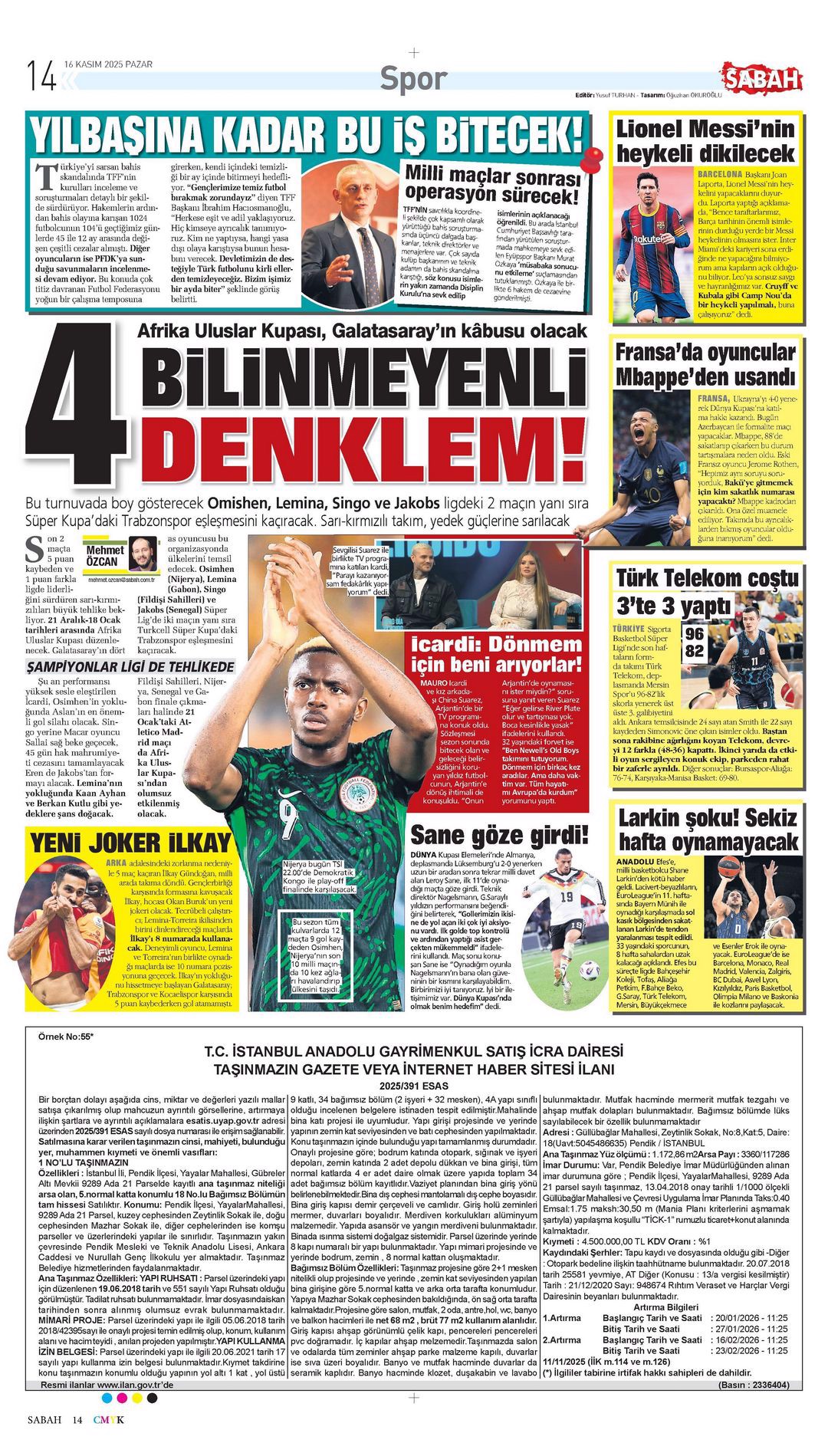 Gazetelerin spor sayfalarında günün öne çıkan manşetlerine göz atabilirsiniz.