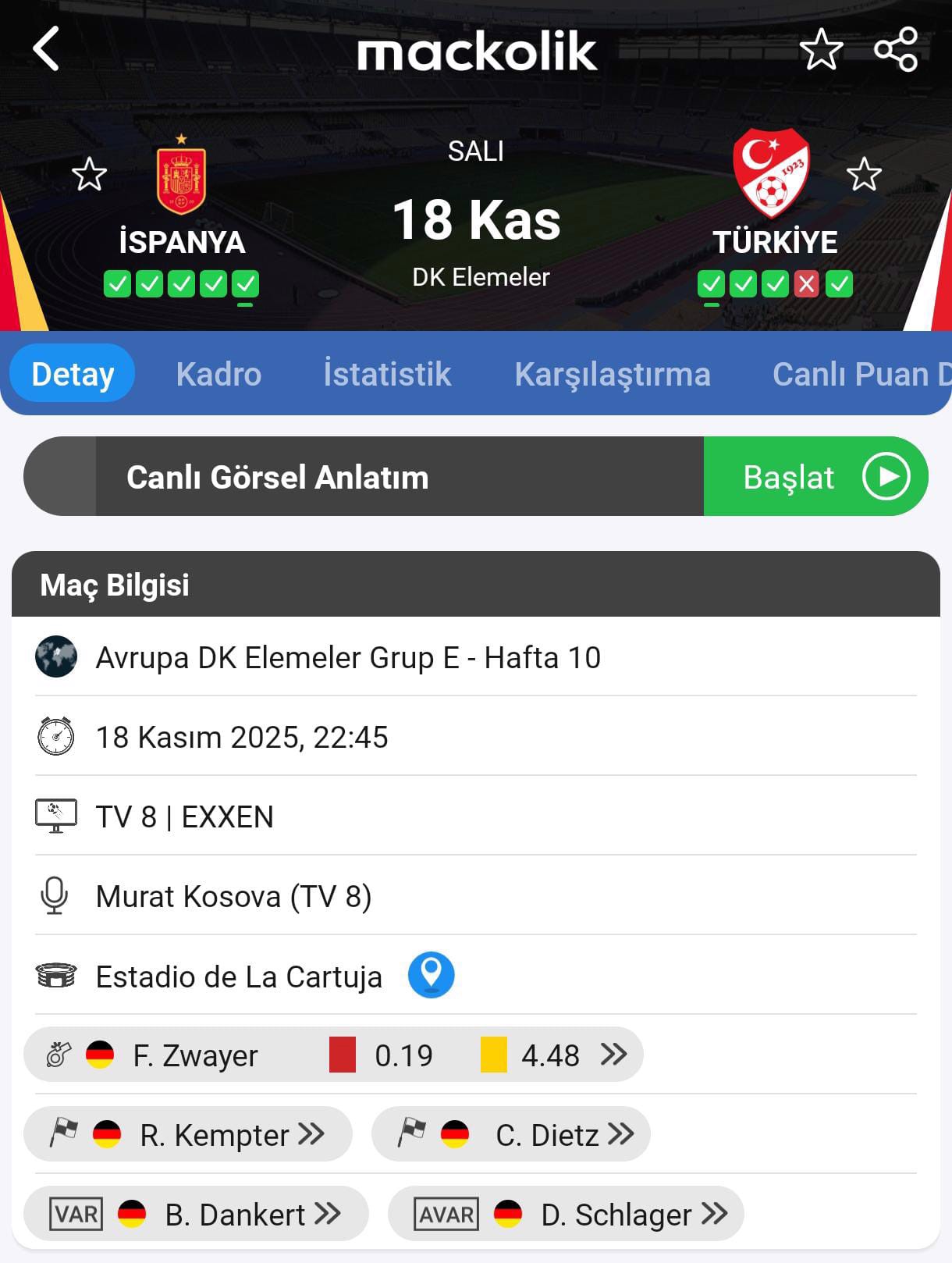 A Milli Futbol Takımı'nın 2026 FIFA Dünya Kupası Elemeleri E Grubu'ndaki altıncı ve son maçında 18 Kasım Salı günü deplasmanda İspanya ile oynayacağı müsabakayı Alman hakem Felix Zwayer yönetecek.