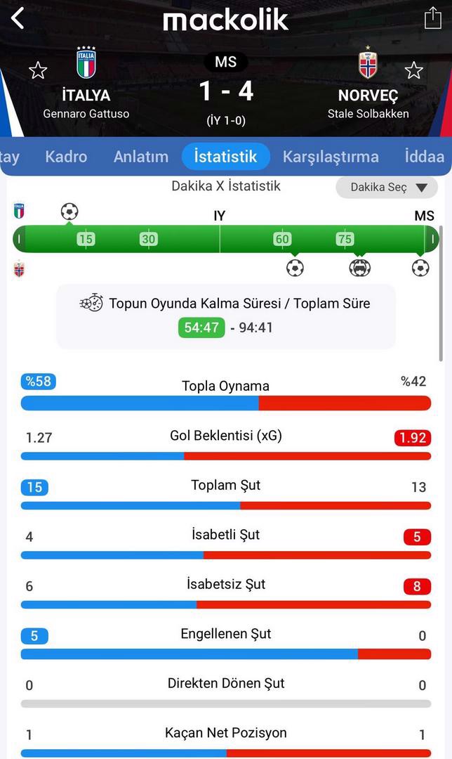 Dünya Kupası Elemeleri I Grubu'nda İtalya, sahasında Norveç ile karşı karşıya geldi.