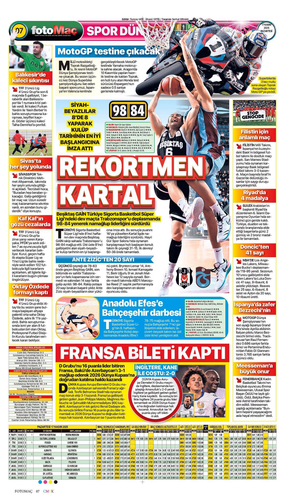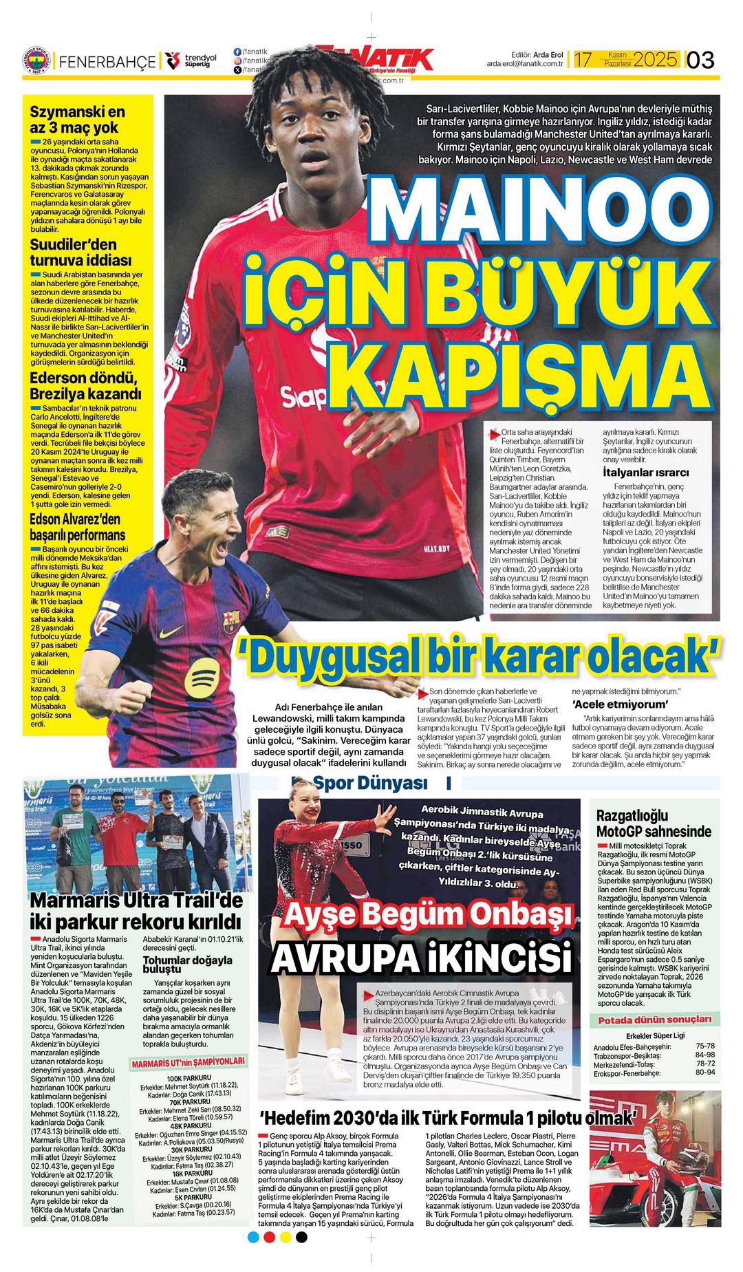 Gazetelerin spor sayfalarında günün öne çıkan manşetlerine göz atabilirsiniz.
