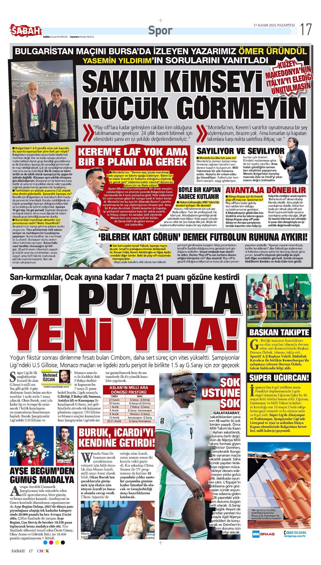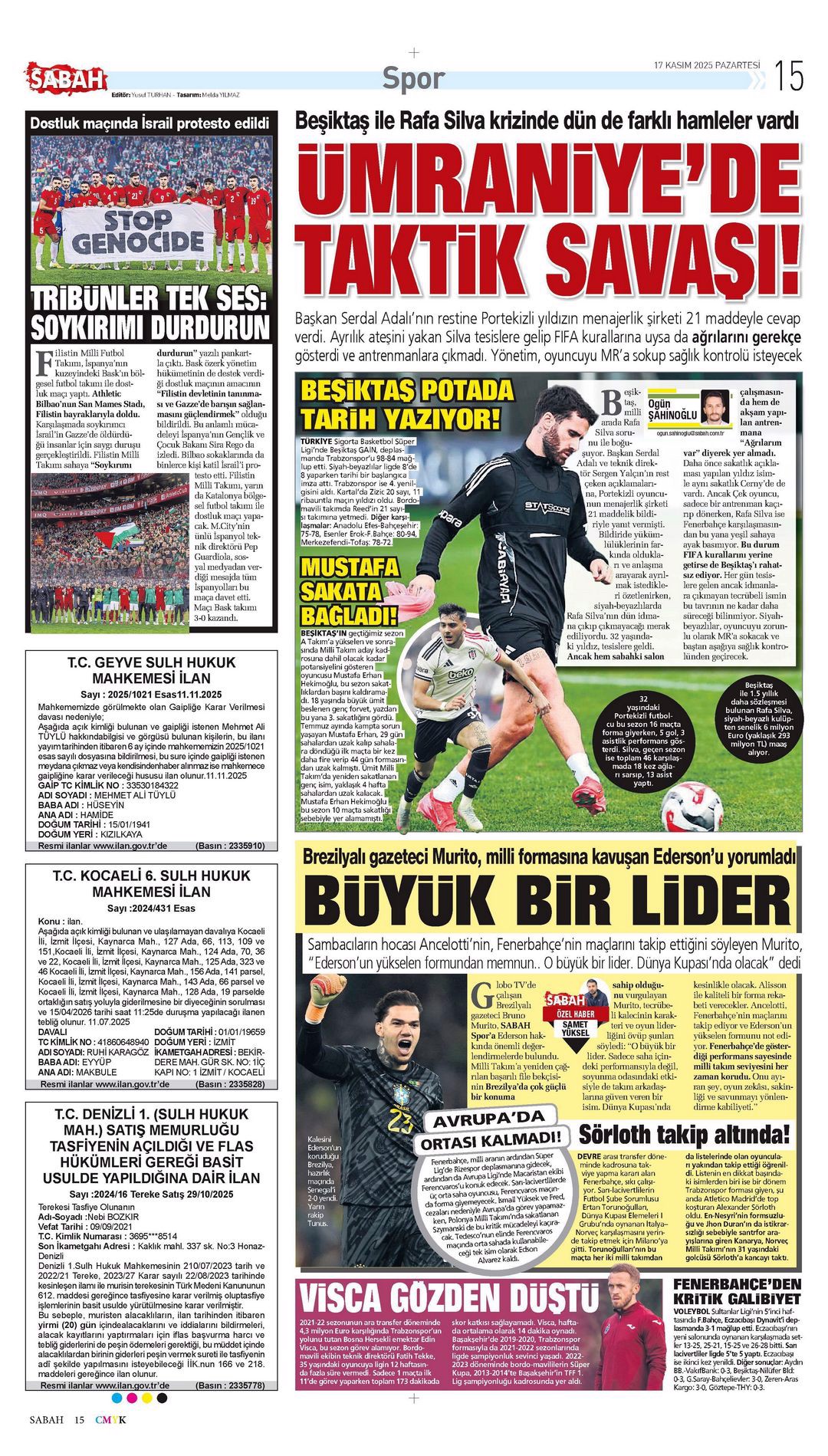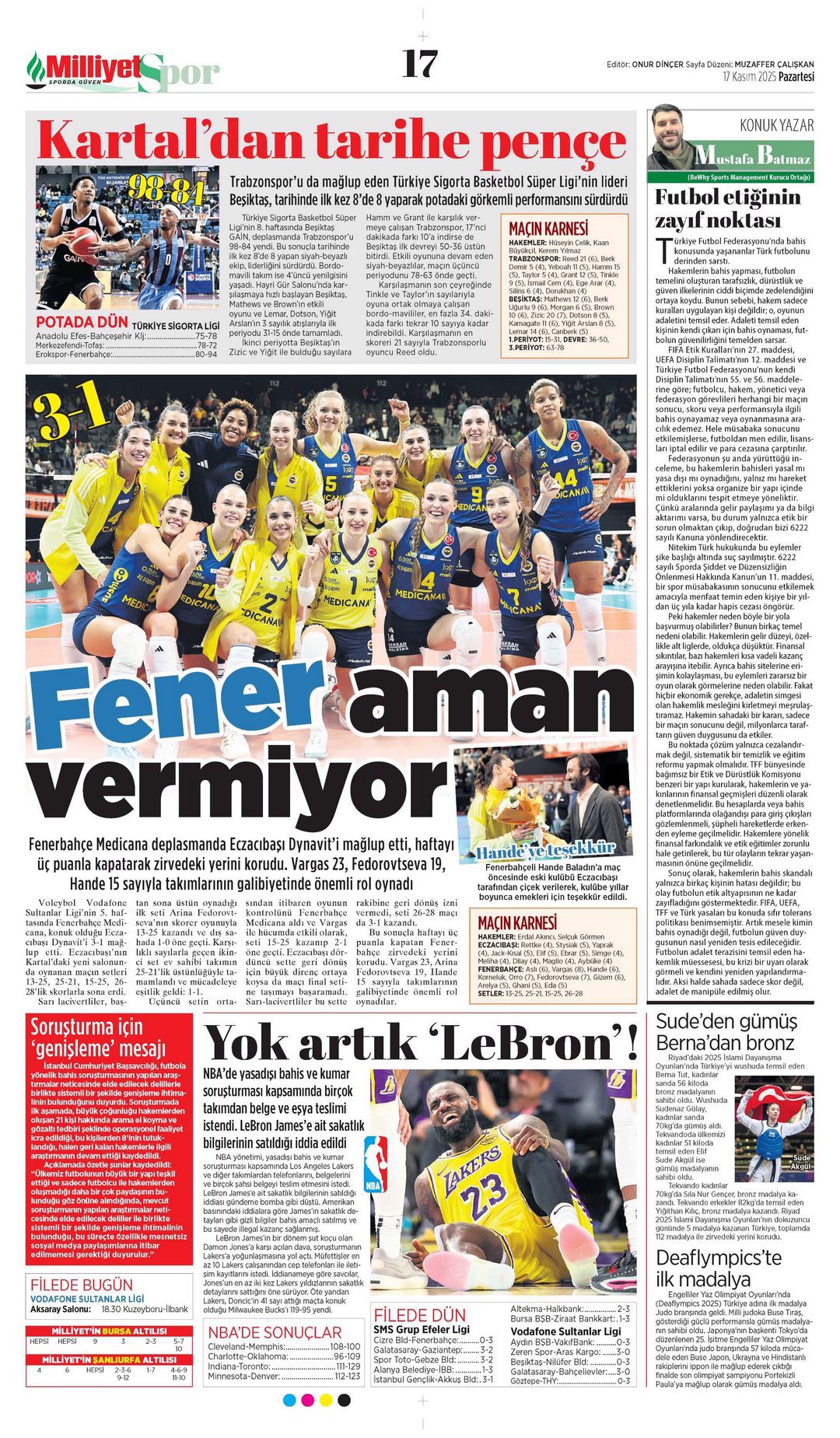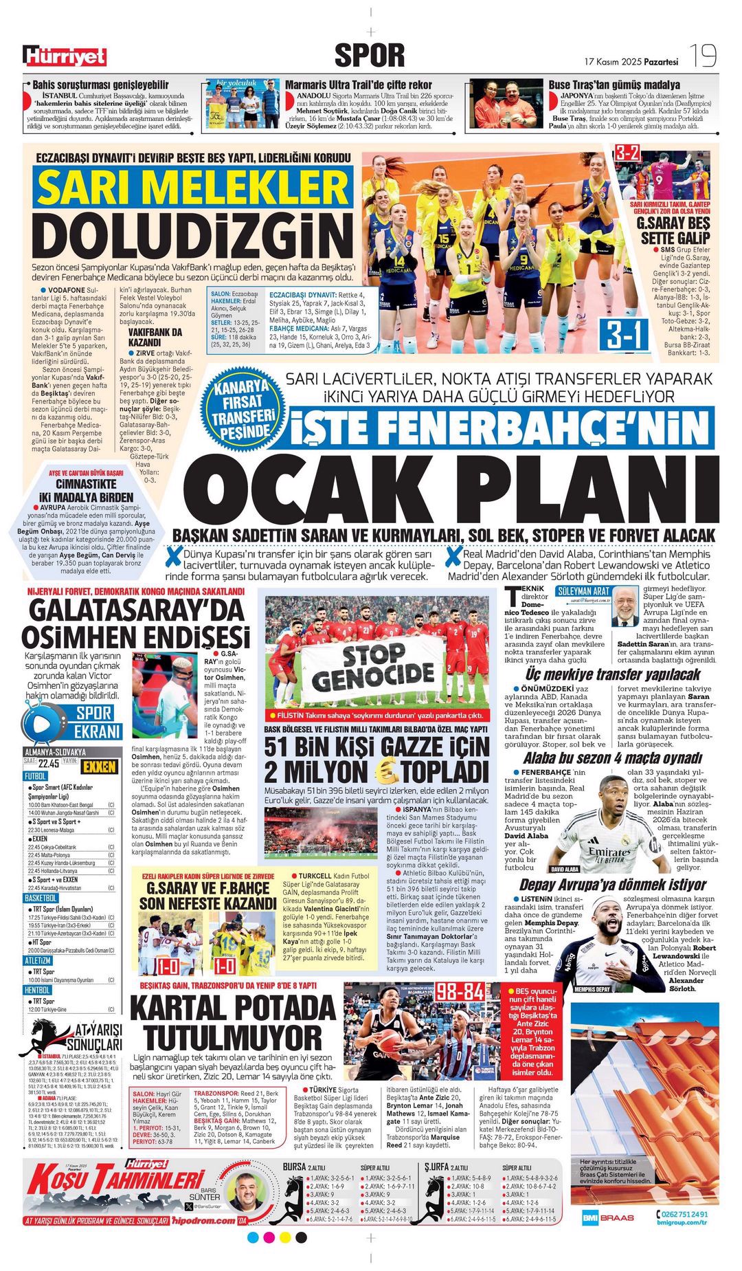 Gazetelerde günün spor sayfaları