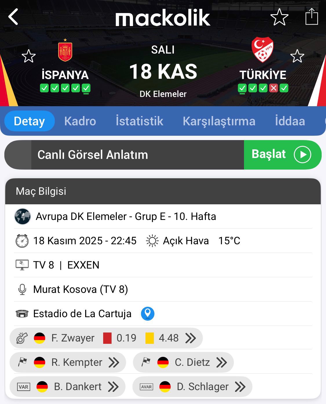 A Milli Futbol Takımımız, 2026 FIFA Dünya Kupası Avrupa Elemeleri E Grubu altıncı ve son maçında deplasmanda İspanya ile karşı karşıya gelecek.