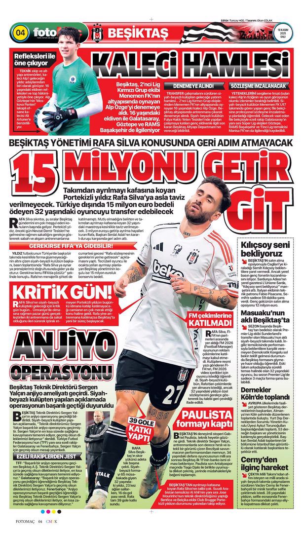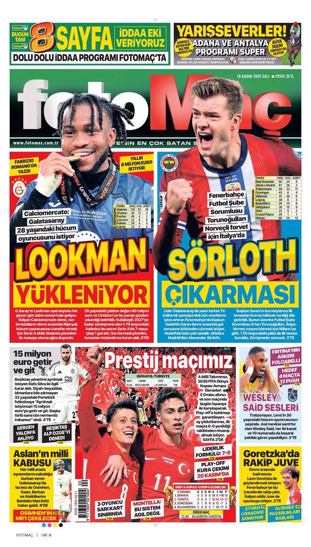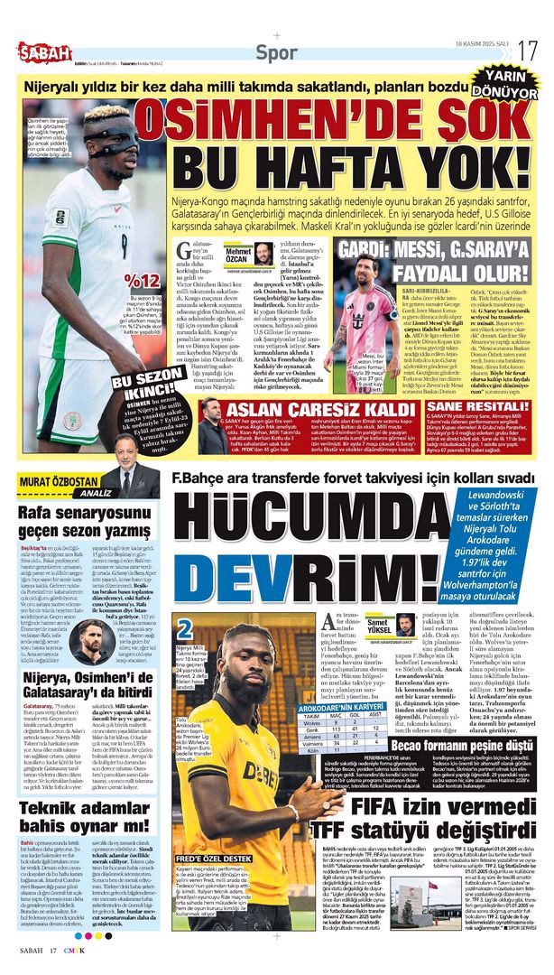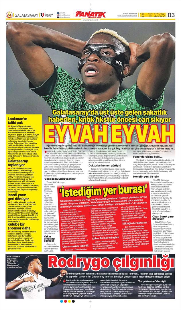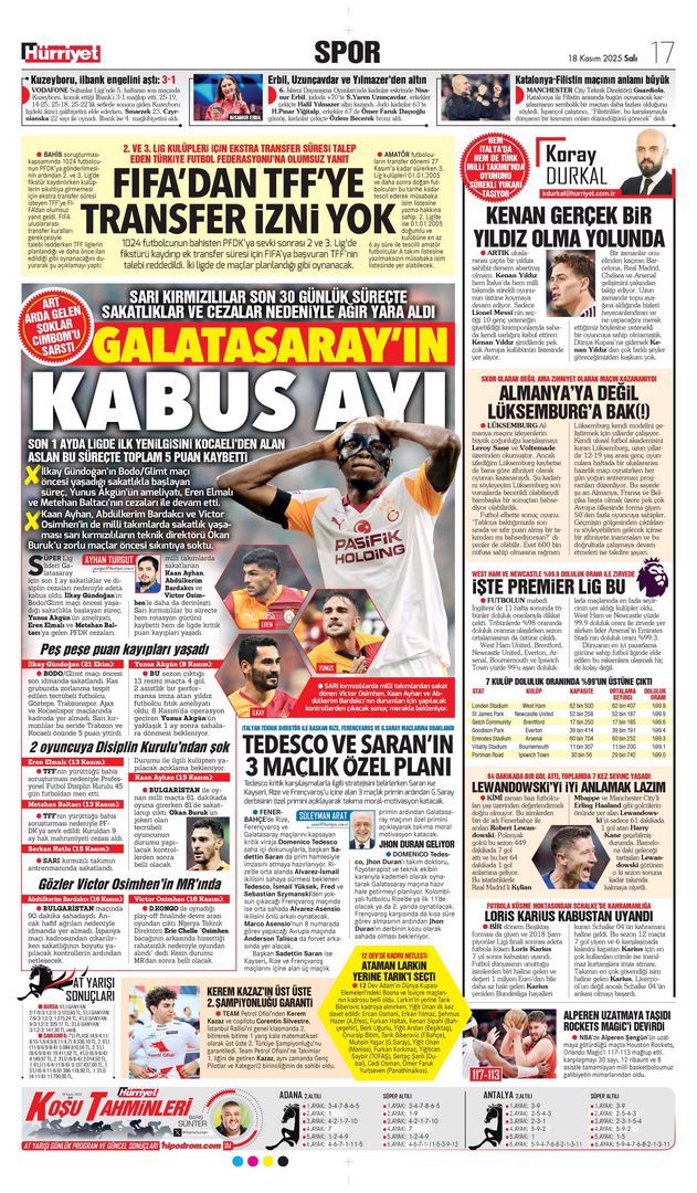 Gazetelerin spor sayfalarında günün öne çıkan manşetlerine göz atabilirsiniz.
