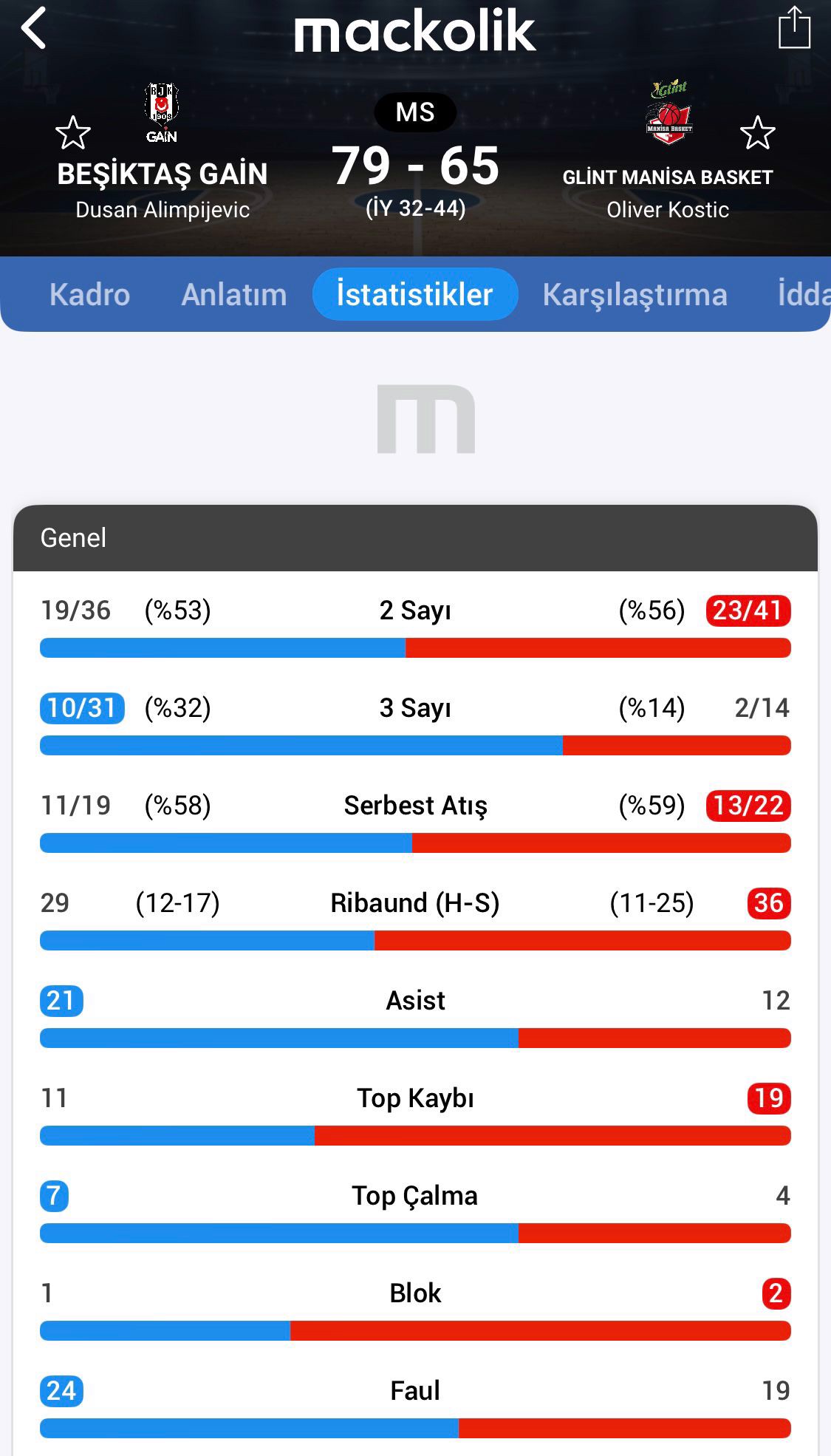 Karşılaşmanın ilk yarısını konuk ekip 44-32 önde tamamlasa da ikinci yarıda oyunun kontrolünü ele geçiren siyah-beyazlılar, üstün performansıyla parkeden 79-65 galip ayrıldı.
