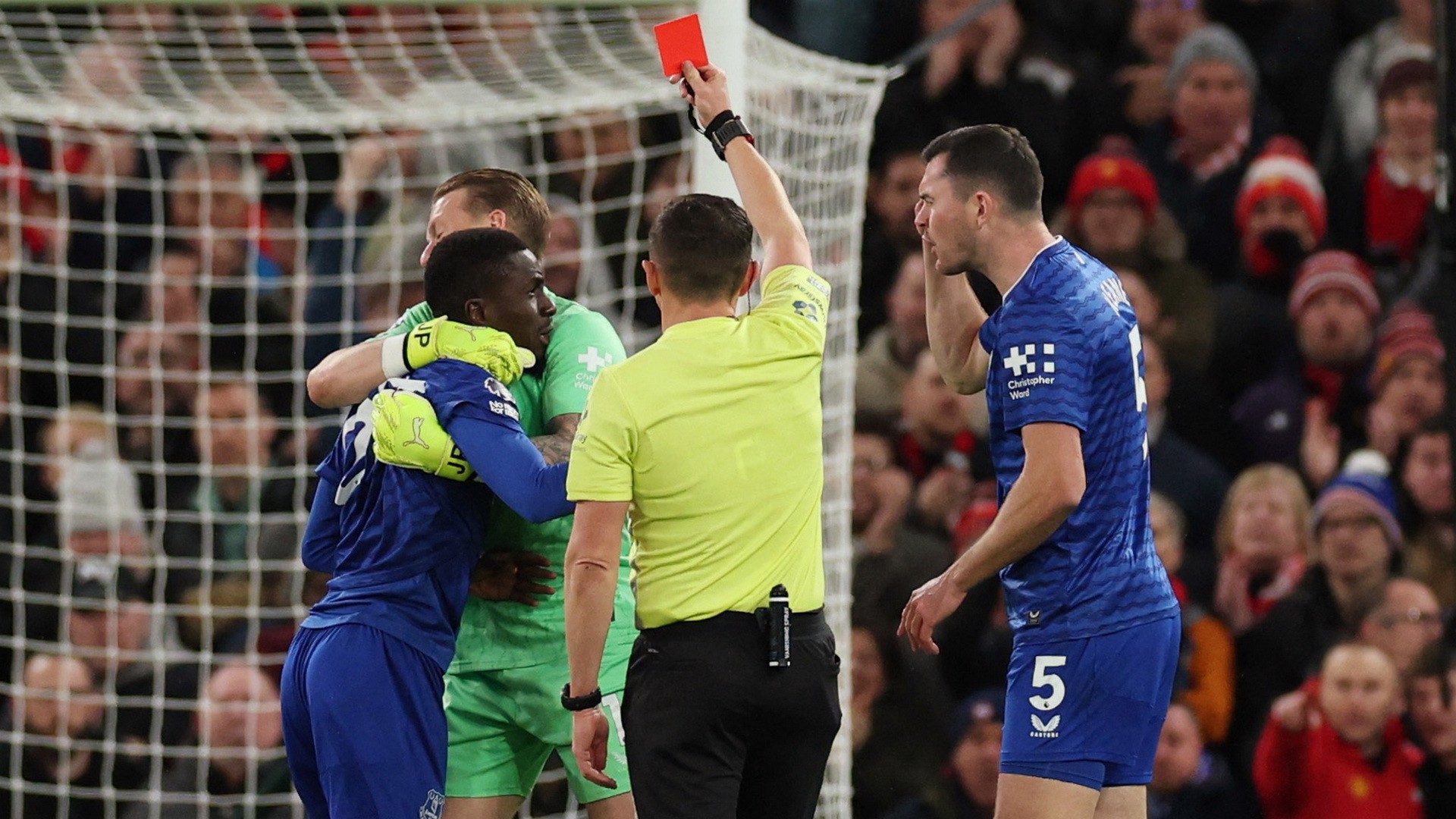 Manchester United, maçın başında Bruno Fernandes'in şutunun hemen ardından Gueye ve Keane arasındaki tartışmanın yaşanmasıyla 80 dakika boyunca bir kişi fazla oynamasına rağmen Everton karşısında 1-0'lık yıpratıcı bir yenilgiye uğradı.