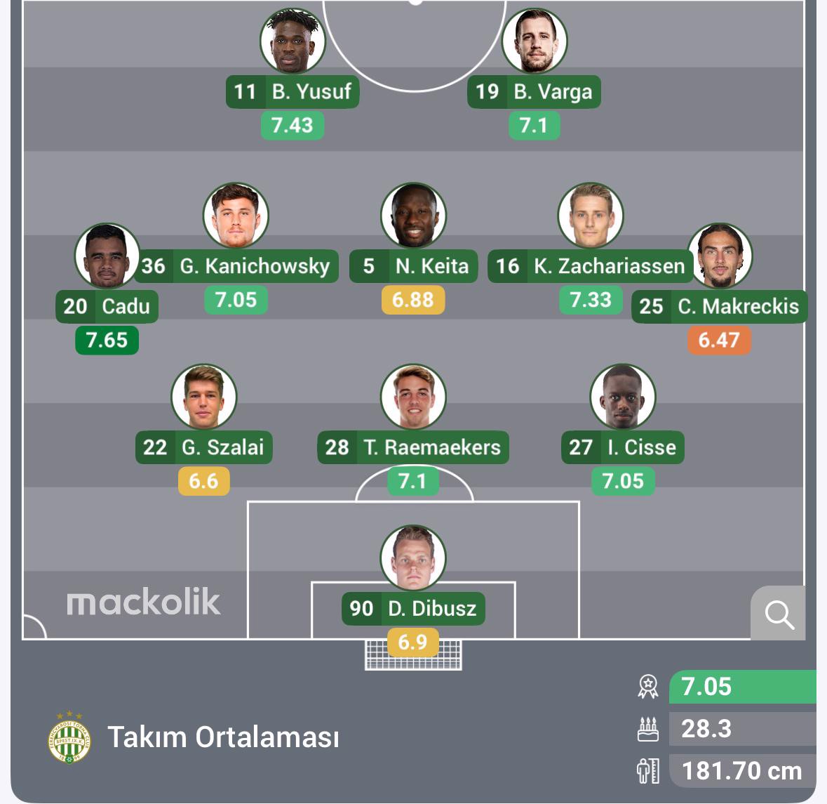 Ferencvaros: Dibusz, Cisse, Raemaekers, Szalai, Makreckis, Zachariassen, Keita, Kanichowsky, Cadu, Varga, Yusuf