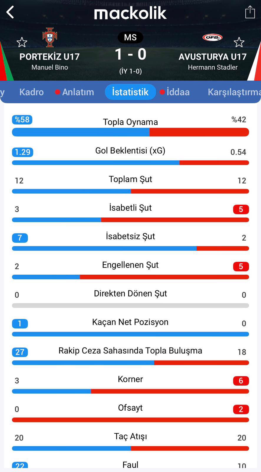 Karşılaşmanın ilk yarısı Portekiz'in 1-0'lık üstünlüğüyle tamamlandı.