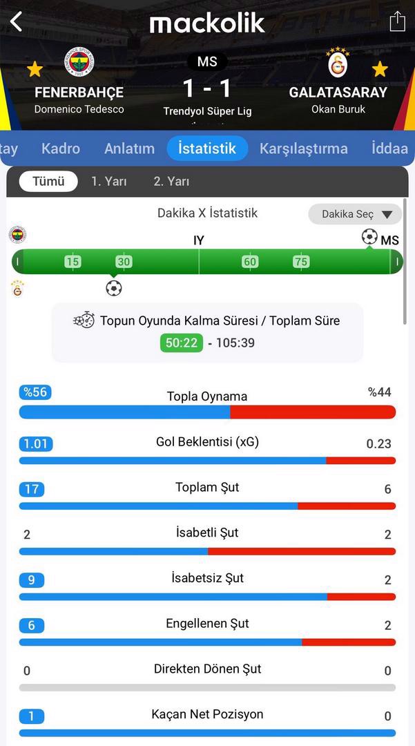 Maçın kalan bölümünde gol sesi çıkmadı ve dev derbi 1-1 berabere tamamlandı.