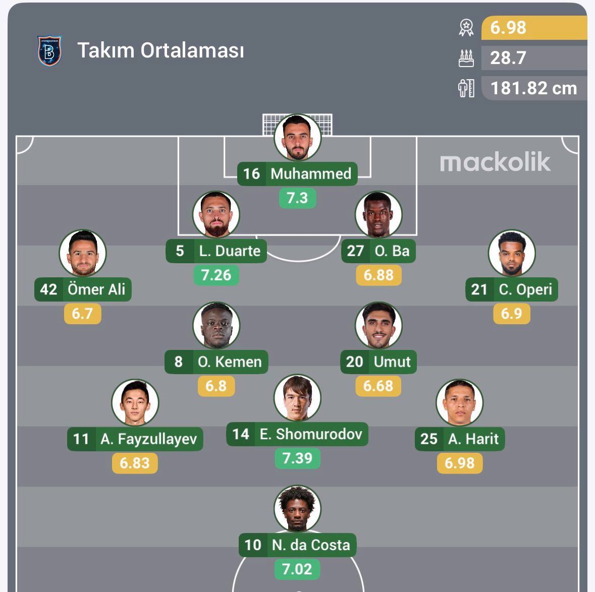 Başakşehir: Muhammed Şengezer, Operi, O.Ba, Duarte, Ömer Ali Şahiner, Umut Güneş, Kemen, Harit, Shomurodov, Fayzullayev, Nuno da Costa