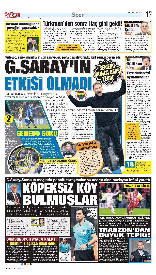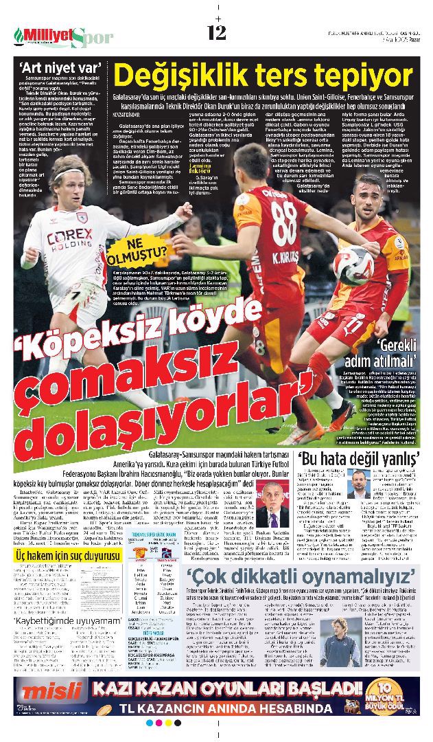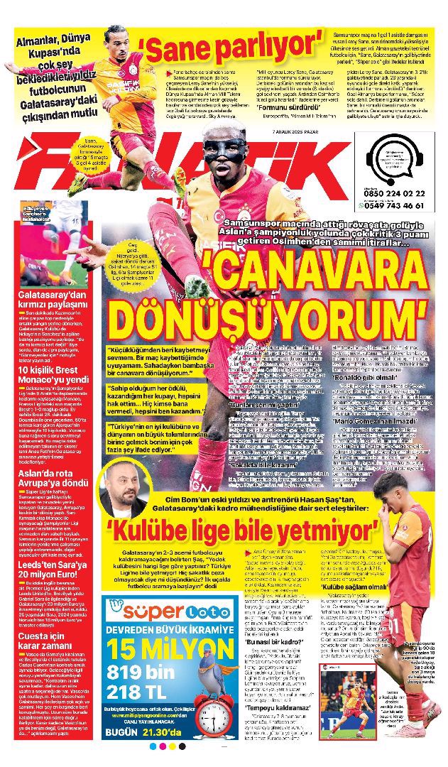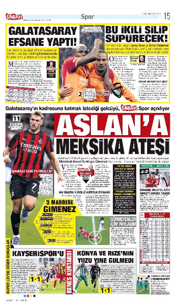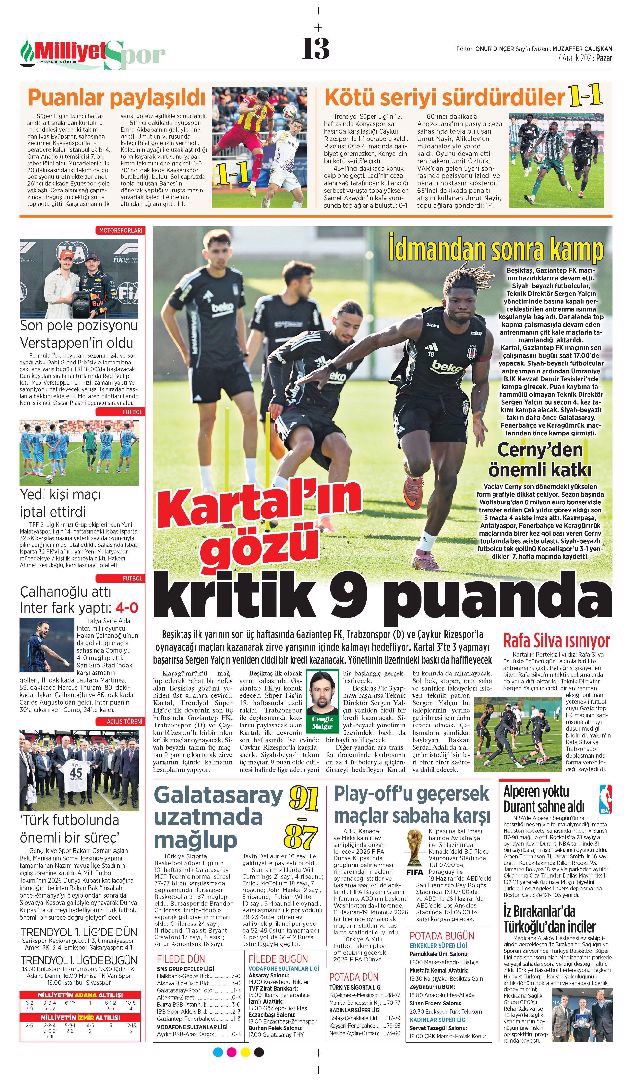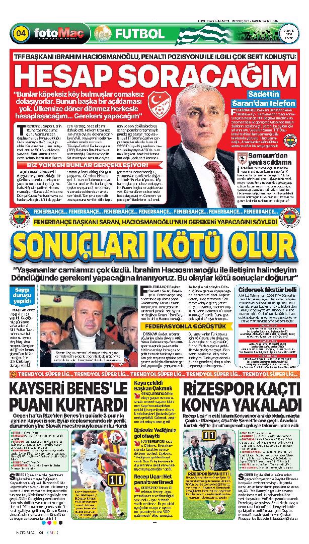 Gazetelerin spor sayfalarında günün öne çıkan manşetlerine göz atabilirsiniz.