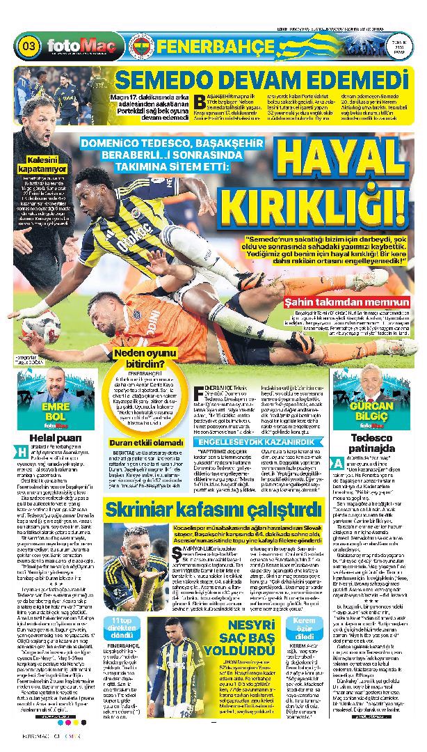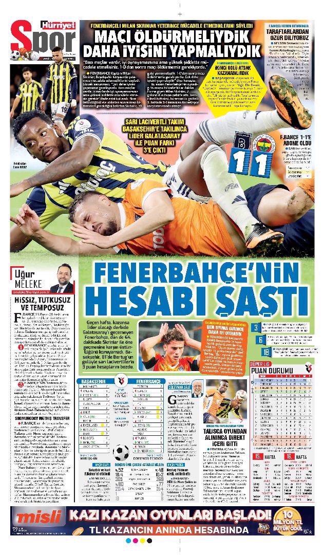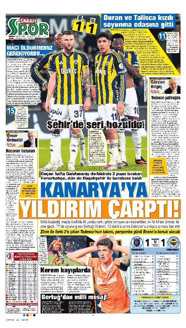Gazetelerde günün spor sayfaları