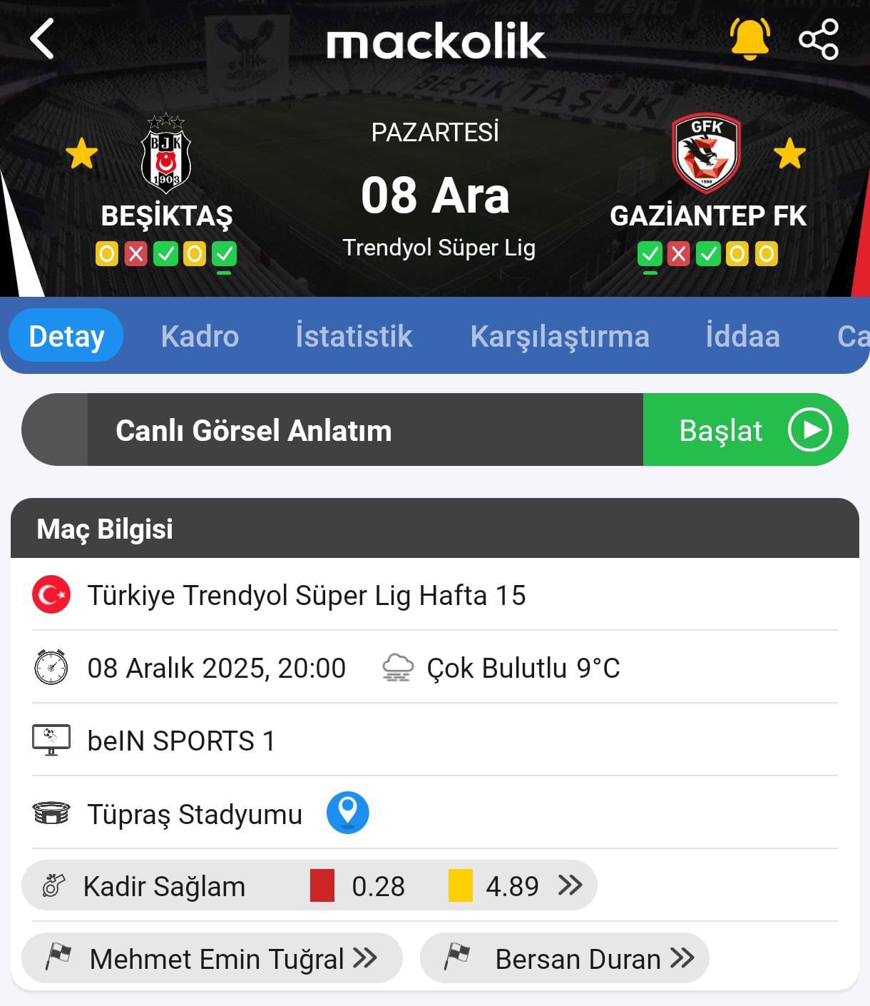 Beşiktaş, Trendyol Süper Lig'in 15. haftasında Gaziantep FK'yi konuk edecek.
